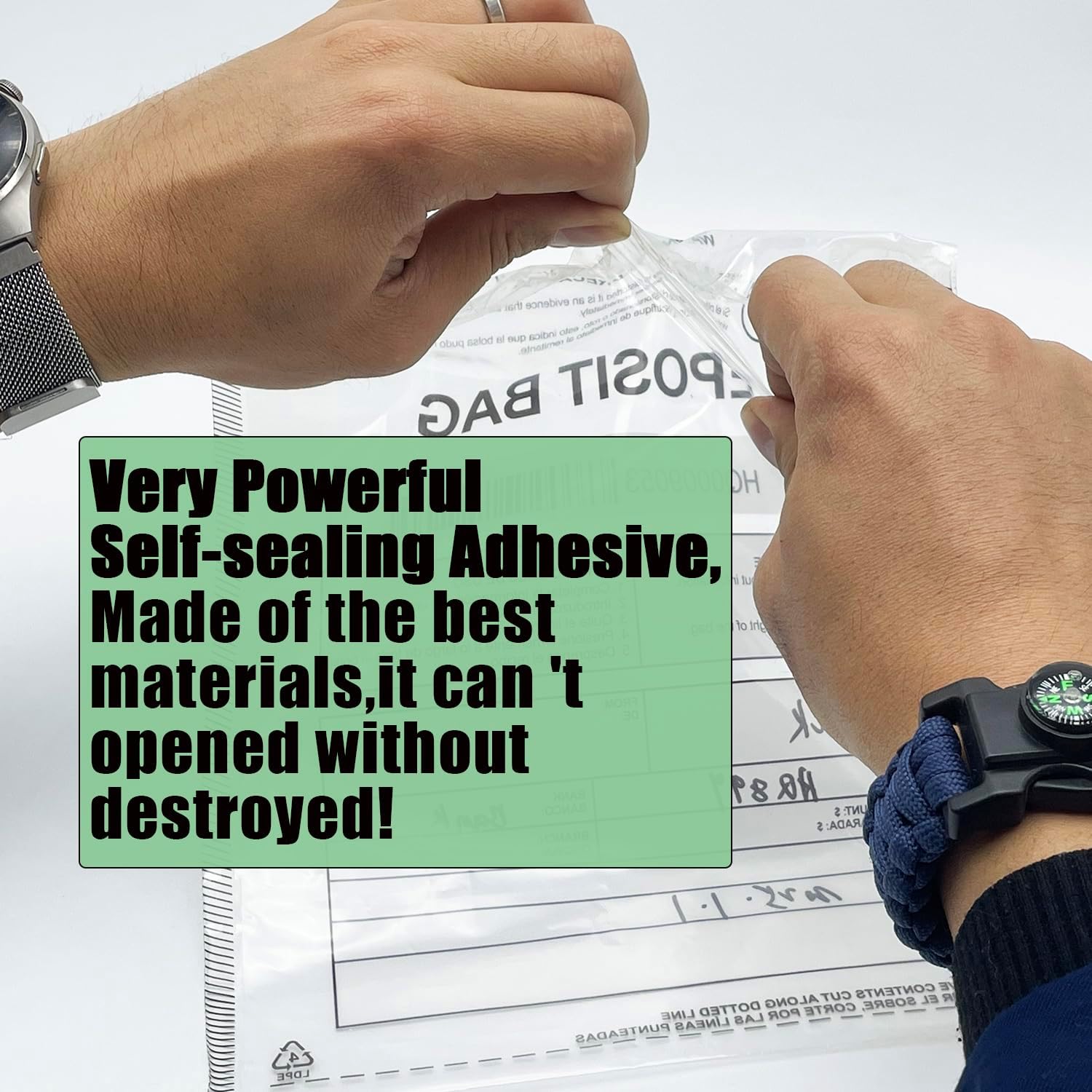 - Ultimate Security Deposit Bags:We tamper-evident deposit bags use the latest very powerful hot melt adhesive sealing technology,it can 't opened without destroyed the bag after closing the bag. Great for bank deposits, currency, coins, checks, receipts and cash management transportation