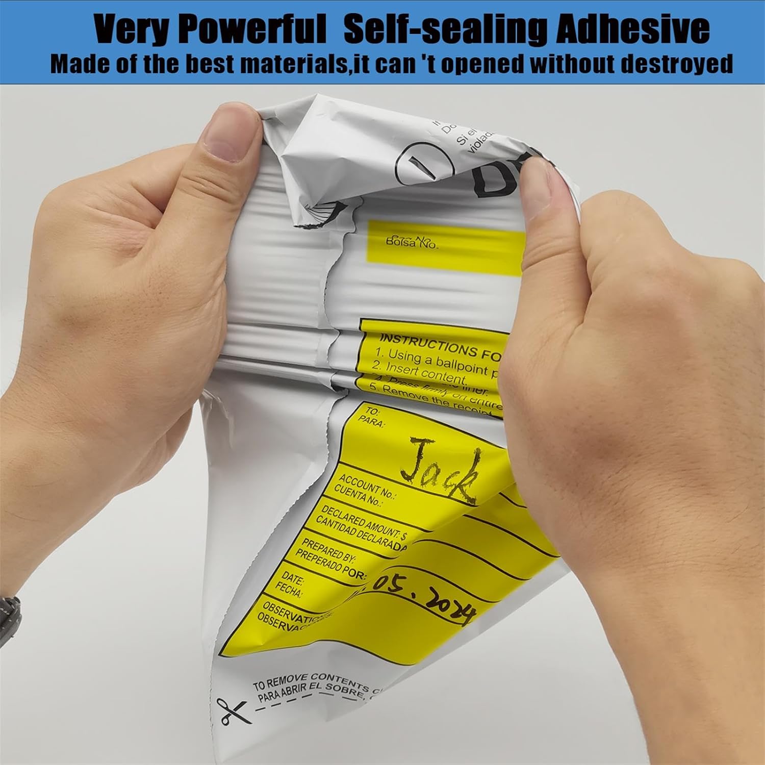 - Ultimate Security Deposit Bags:We tamper-evident deposit bags use the latest very powerful hot melt adhesive sealing technology,it can 't opened without destroyed the bag after closing the bag. Great for bank deposits, currency, coins, checks, receipts and cash management transportation