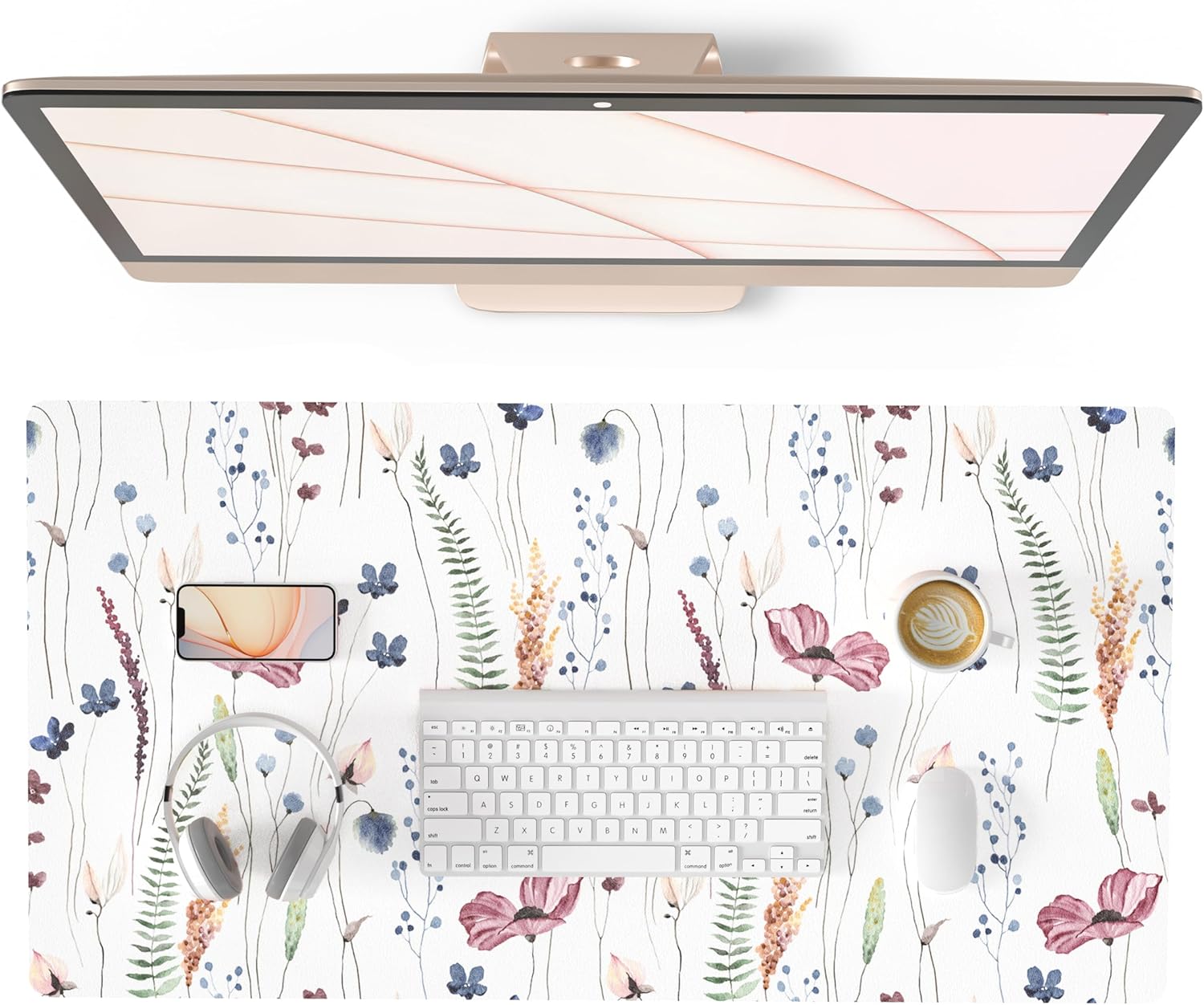 QiyI Large Mouse Pad, Cute Flower Desk Mat for Desktop, Women Girls Floral Office Décor Accessories, PU Leather Waterproof Big Gaming Mousepad, Wildflowers Desk Pad Computer Mat, 31.5" x 15.7"