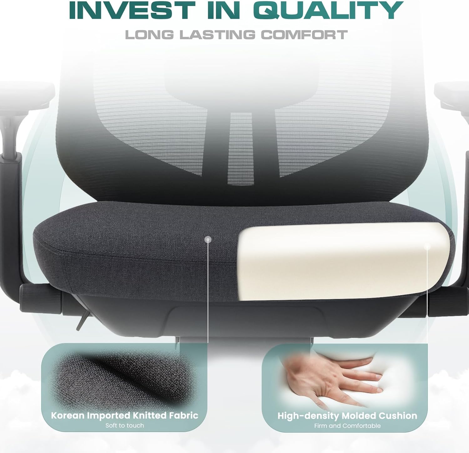 - ⏩ VENTILATED ERGONOMIC MESH OFFICE CHAIR--Adopting high-end breathable mesh fabric imported from Korea with great flexibility and durability, the high back office chair perfectly fits the curve of your spine and protects the cervical and lumbar spine. In addition, the lumbar support also offers well support for your back.