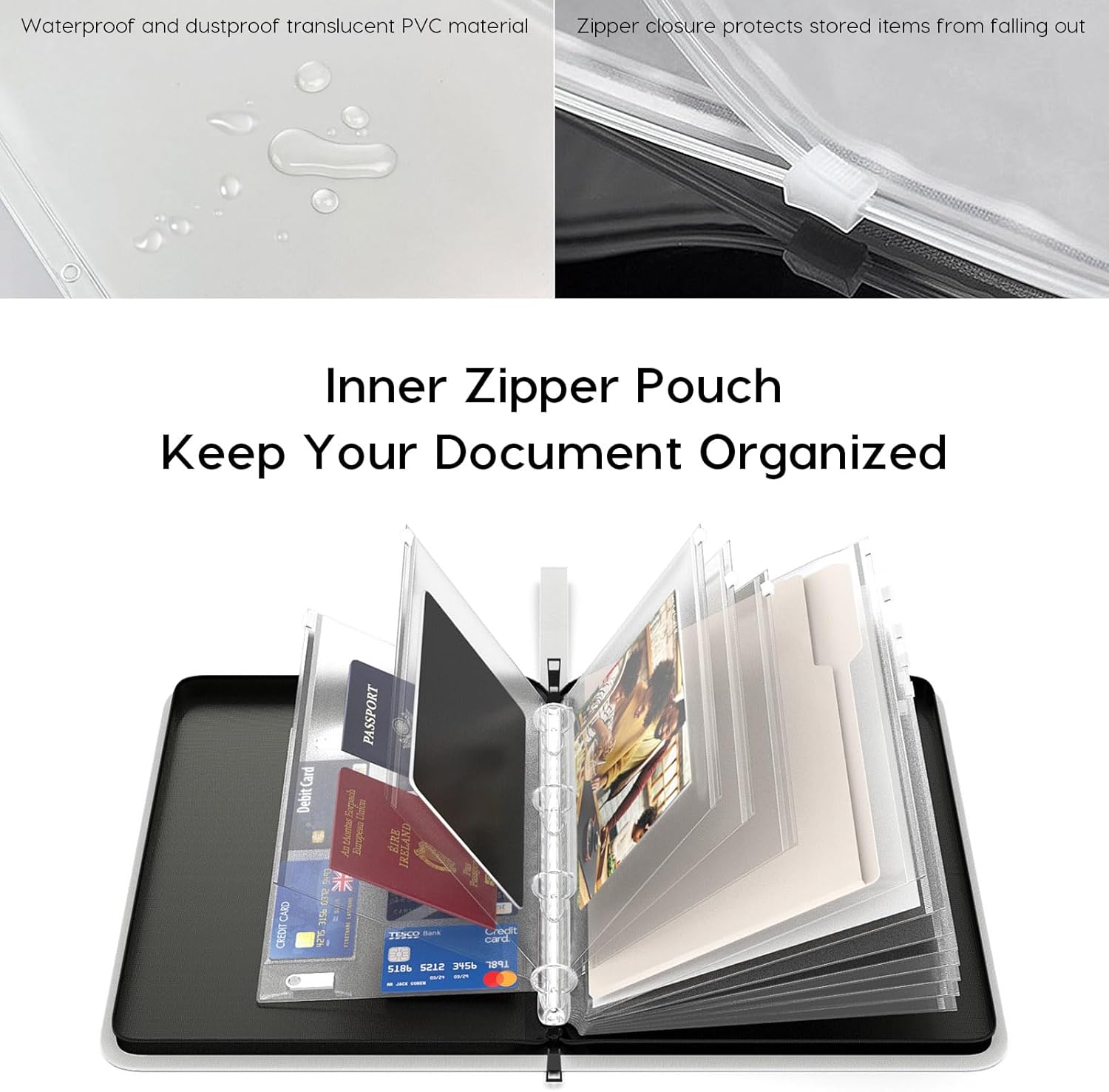- Easy To Carry: Zipper Binder Size: 14" x 10.6" x 2", not too big or bulky, easy to carry. With double zipper design and portable handle, you can put it at home, office, car, safe, locker, or take it for travel