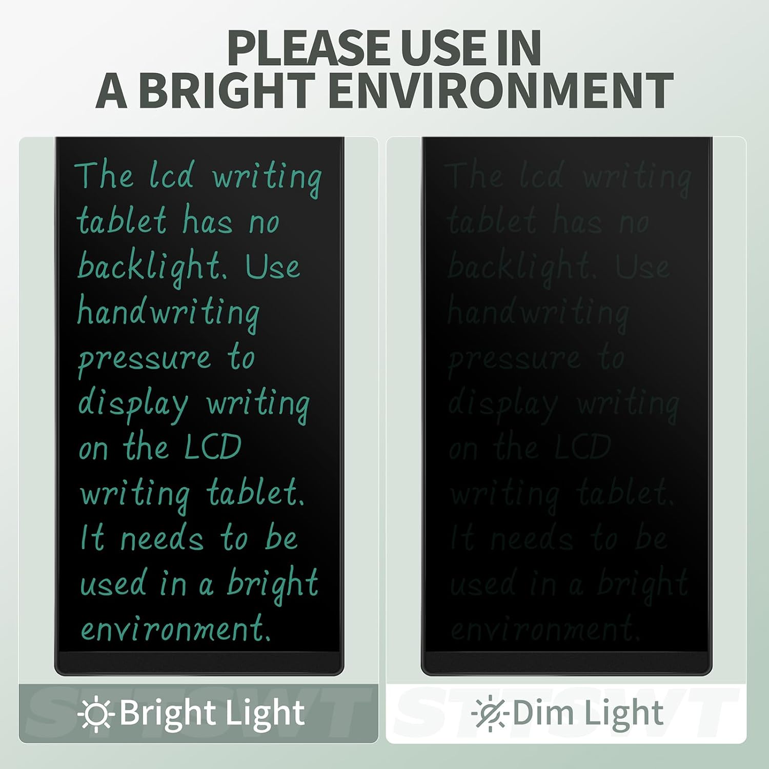 - Eye Protection: The writing tablet features pressure sensitive technology, no blue light and no radiation; It is safe to use for a long time without affecting the eyes; The handwriting pen can create a blue-green color handwriting lines, which are clear and eye-catching; And there's no fingerprints or press mark left on the screen, giving you a better writing experience