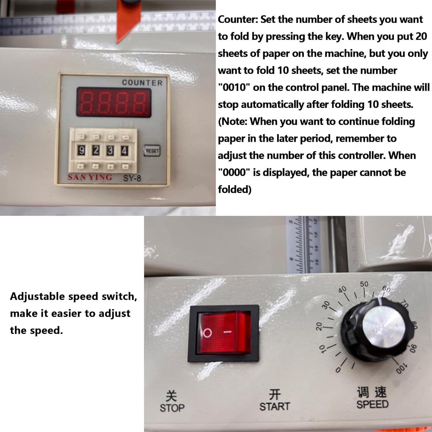 - Versatile Applications: It is a small horizontal origami machine, it is suitable for folding paper in different styles, it adopts a big rubber wheel to convey paper and separate paper precisely, and operates easily and efficiently, and it can be widely used for folding Operation Instruction Manuals, document letters, business letters and so on