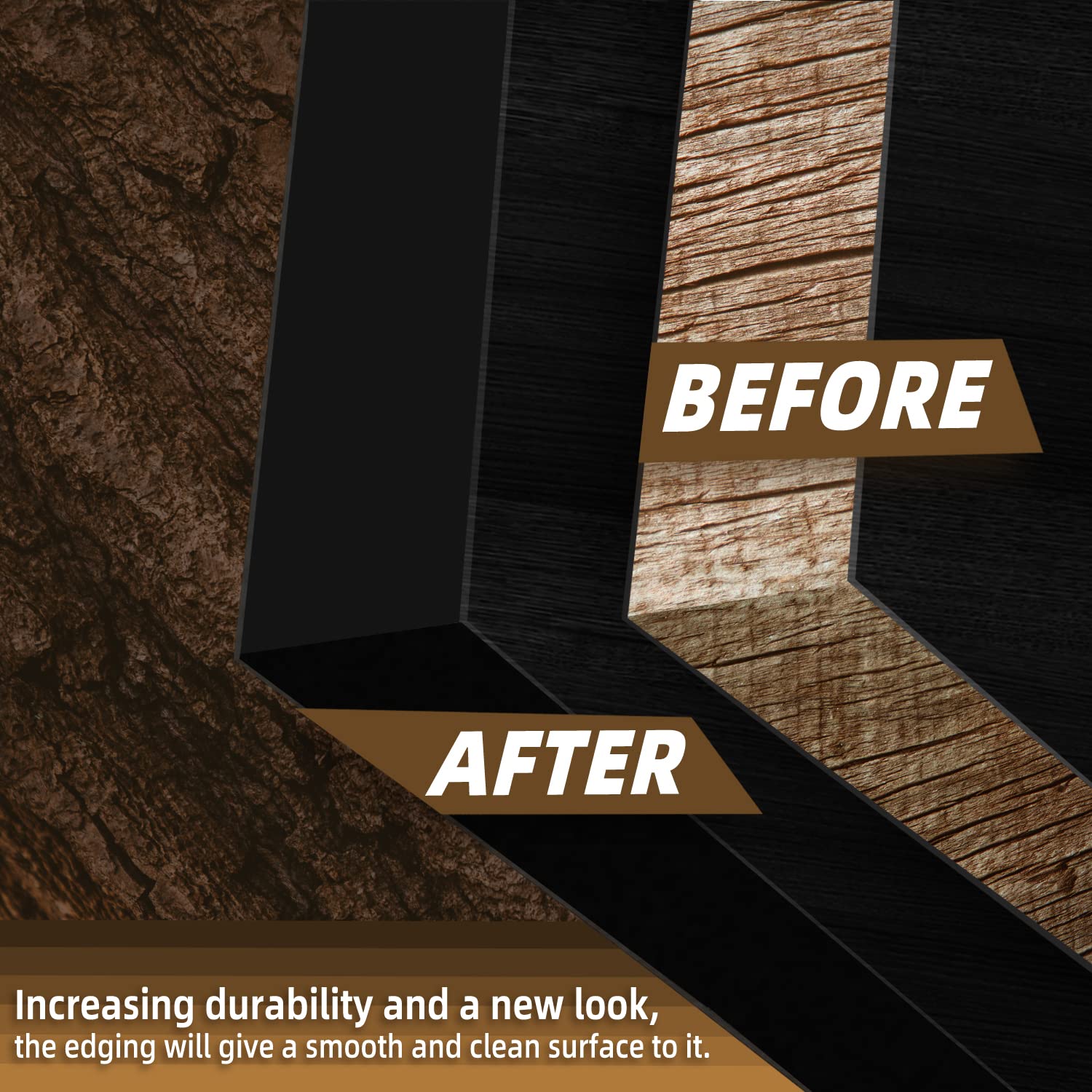- √【UPGRADE DESIGN】- The size of Edge Banding is 7/8 inch x 50ft, and the thickness is 0.6mm, It's suitable for your daily needs. Edge Banding is a strip of wood veneer with heat melt adhesive pre-applied to the back. You simply hold the edge banding in place, then run over it with a heated iron. After cooling, please press it with your hand and trim off the sides with the Utility Knife, 0.6mm thickness can let you easy to do.