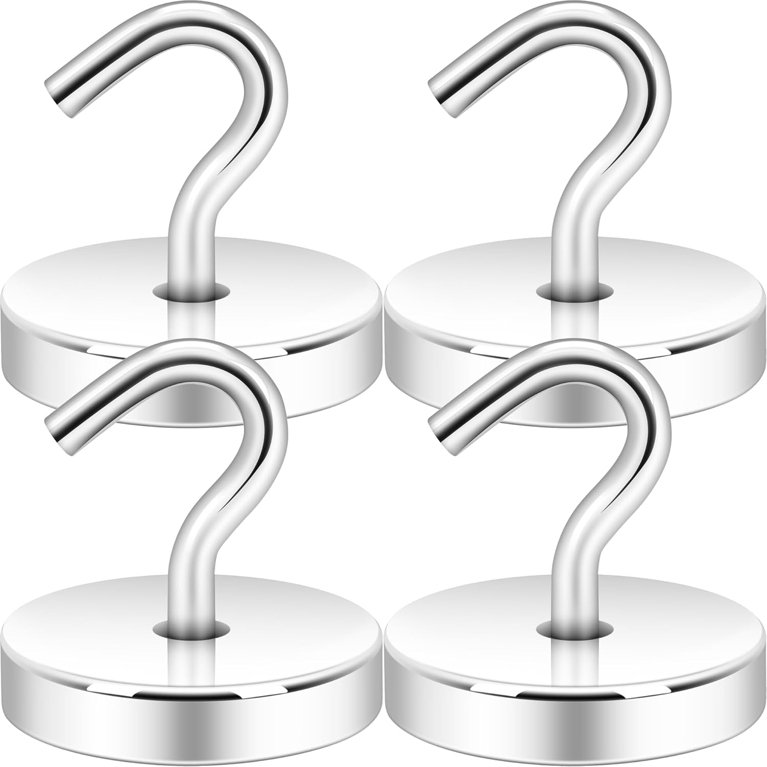 Neosmuk Magnetic Hooks, Heavy Duty 170lb+ Strong Magnets for Cruise Cabins, Ship Essentials, Large Metal Hooks for Hanging on Fridge(Silver,Pack of 4)