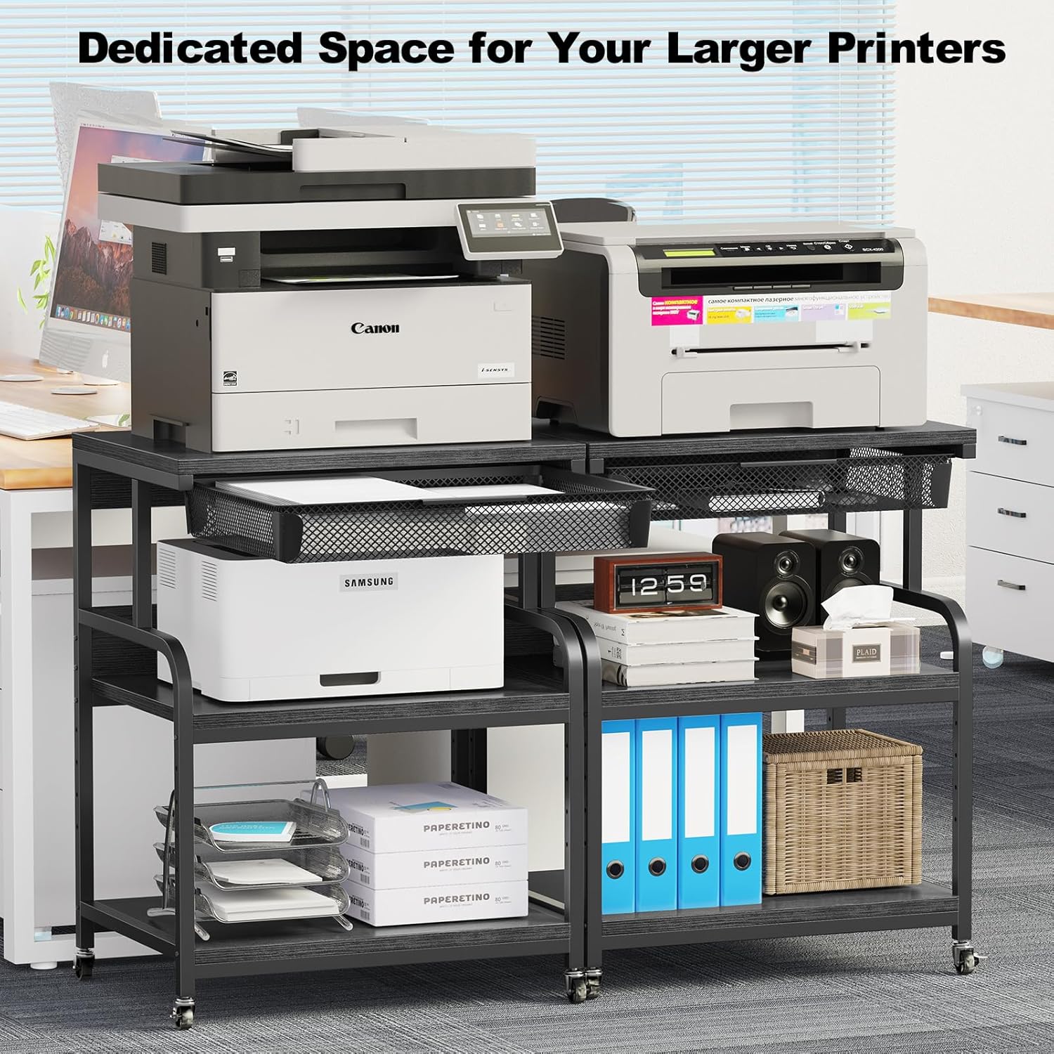 - 5 Adjustable Heights: The printer stand has five adjustable heights to accommodate your different printer size types.Conveniently storing multiple printers,faxes, making full use of vertical space to efficiently organize and store your items.