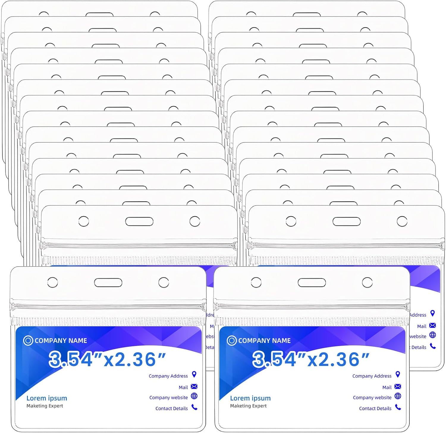 300 Pieces Clear Plastic Horizontal Name Badge ID Card Holders Horizontal Name Badge ID Card Holders with Waterproof Resealable Zip Transparent PVC Sleeve Cover for Office School