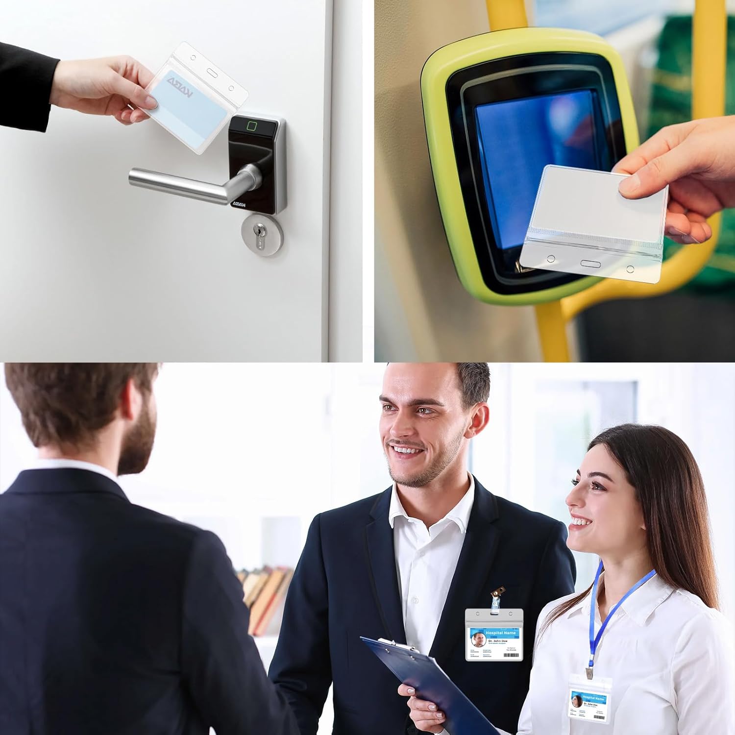 - High clear transparency: the name badge holder is lightweight and odorless, safe and secure, high clarity and transparency; Even when overlap multiple badge holders, the reading is effortless, and the transparent design allows you to quickly see what's inside without taking it out