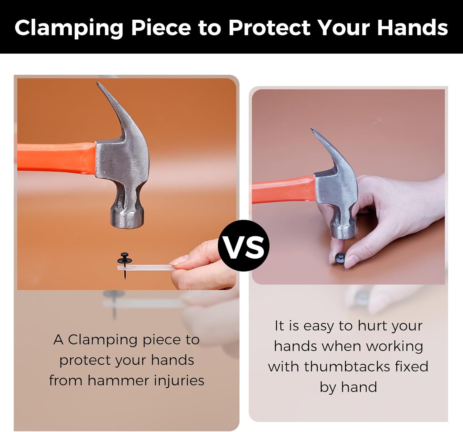 - THUMBTACKS FOR STABLE STRUCTURE: The picture hanging kit are designed with double heads, and the second head provides strong support for the nails for hanging pictures, making it easier to hang heavier objects on the wall without slipping or falling off. Each wall nails for hanging can safely support up to five pounds.