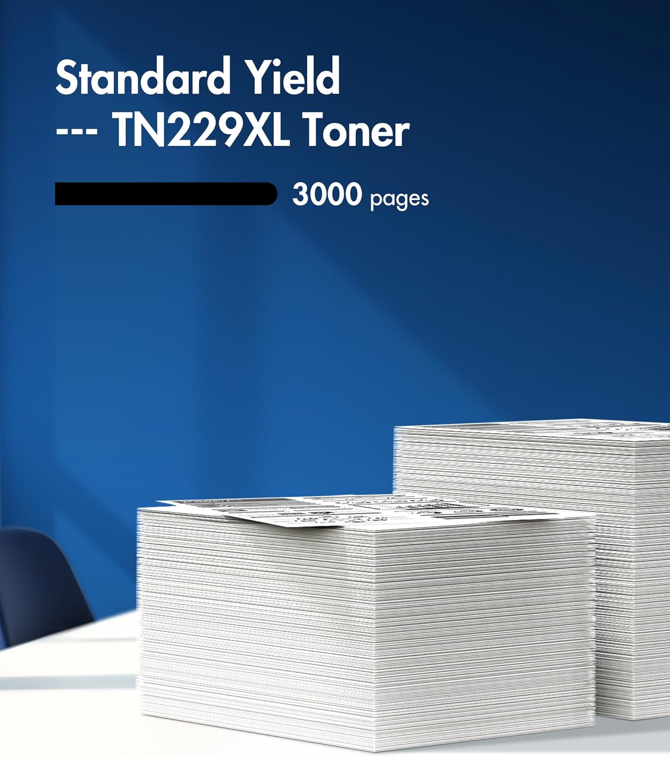 - 3. High Page Yield: Up to 3000 pages for TN229XL bk TN229 Black toner (Letter/A4, at 5% coverage) | Also available for TN229 toner