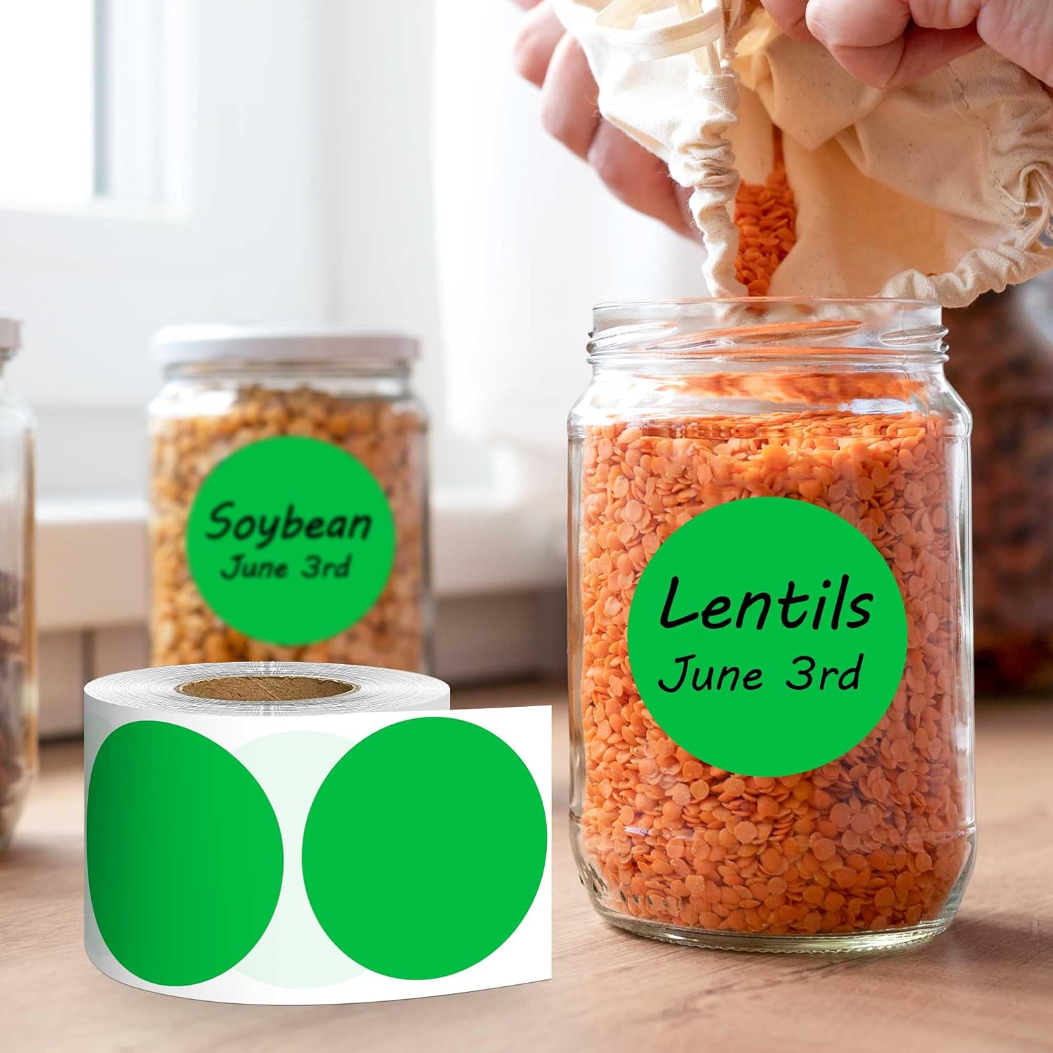 PARLAIM 2 inch Round Color-Code Dot Sticker Labels, 4 Rolls 2000 Adhesive Label Pack in Dispenser Box, Green