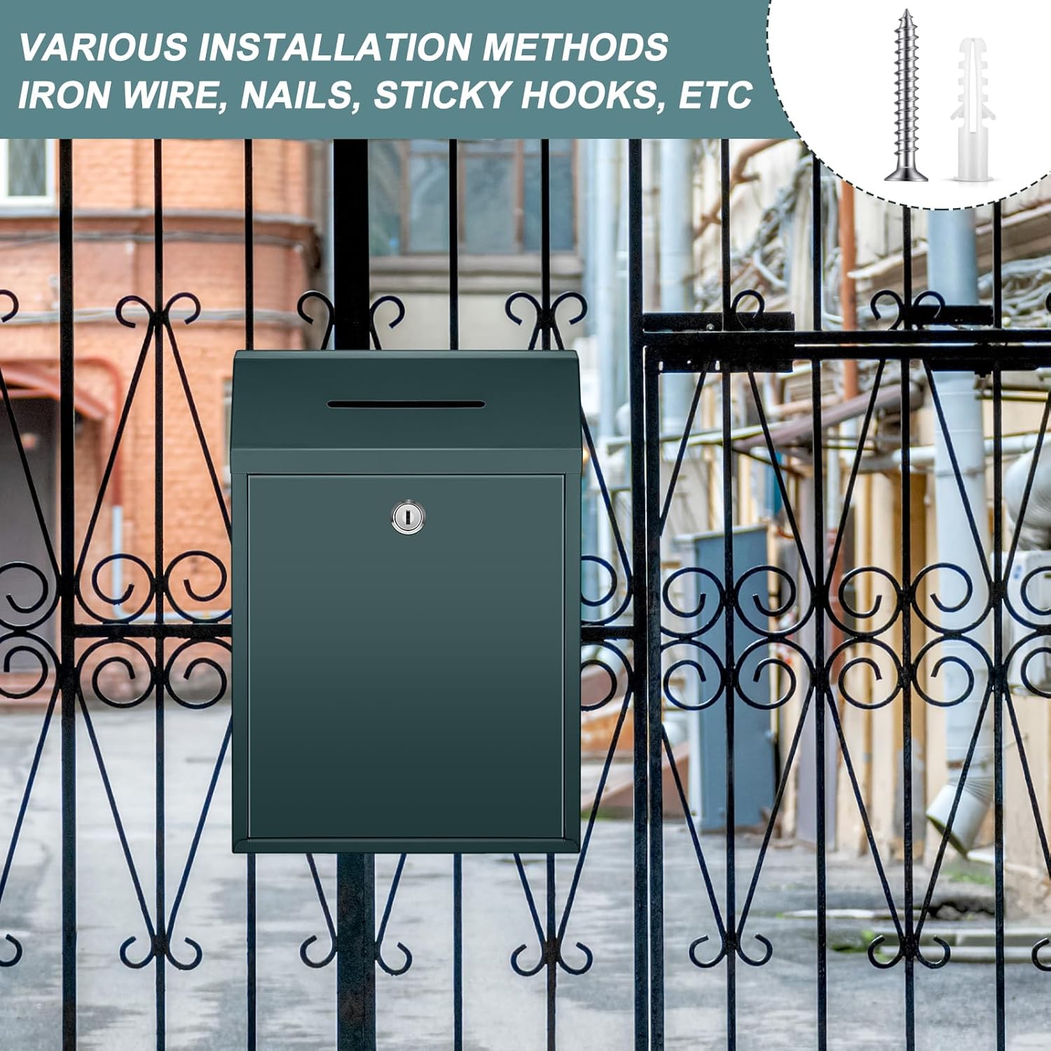 Metal Donation Cash Box Collection Safe Suggestion Box with Lock Wall Mounted Mailbox Delivery Ballot Container for Home Office Outdoor Door(Green,11.8 x 8.6 x 4.7 Inch)