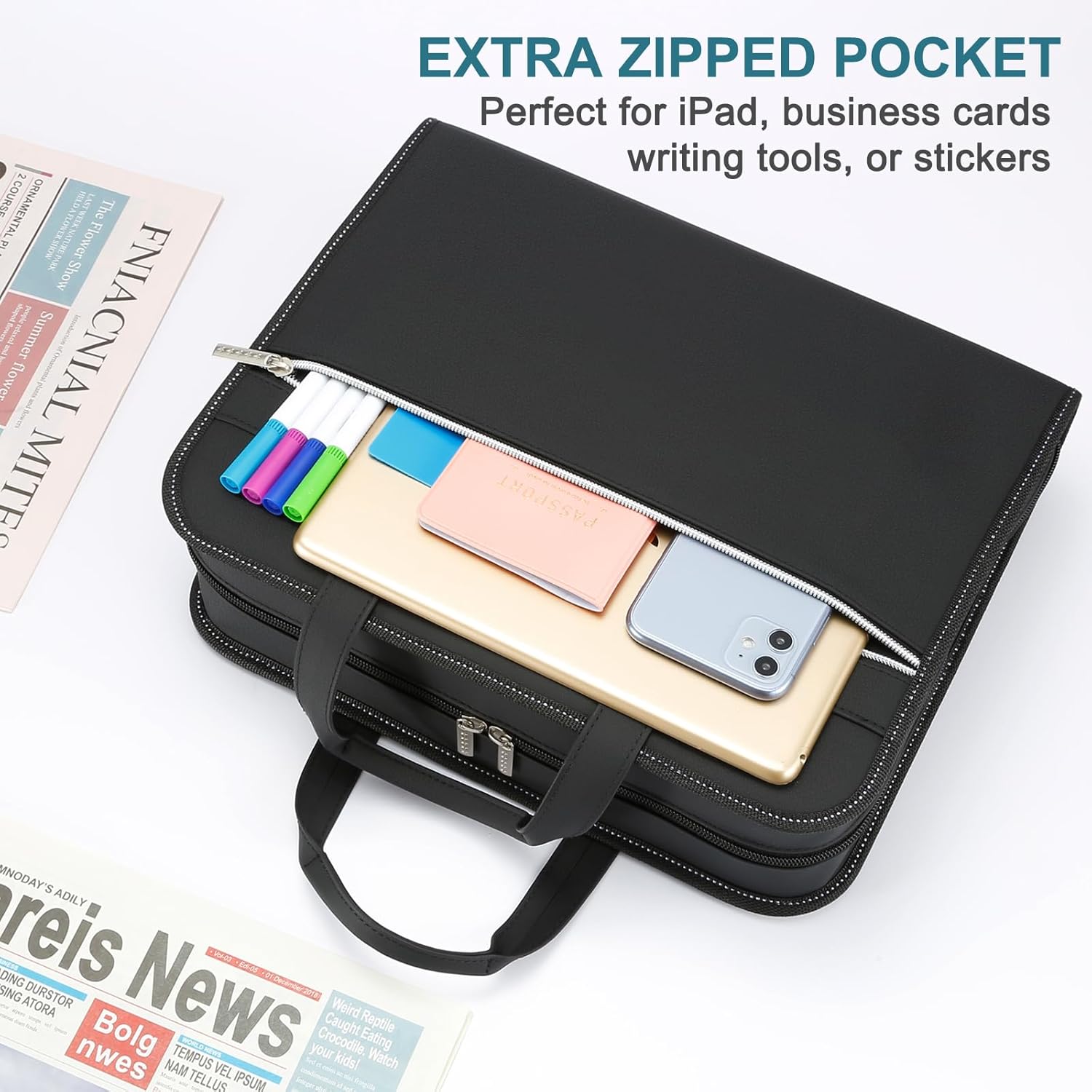 - Unique Design:Upgrade the three sided inner liner to prevent files from falling out and folding easily,more importantly, the inner pages of our accordian file organizer are designed with edge wrapping, making it less likely to tear and more durable during frequent daily use,the leather file organizer features a sturdy and comfortable handle, allowing for easy carrying,whether you're heading to a meeting or traveling, you can transport your important documents with ease.