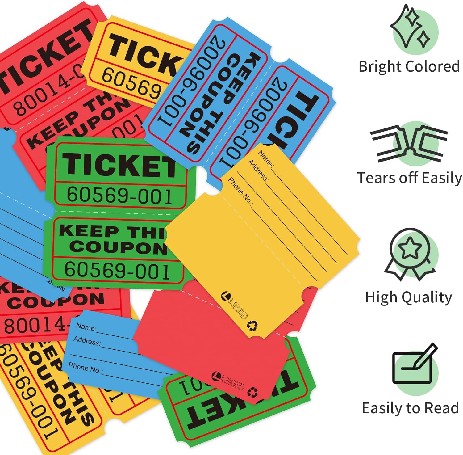 - Multicolor Variety: This set includes 4 colors - blue, yellow, red, and green - with 1000 double roll raffle tickets in each color for a total of 4000 tickets.