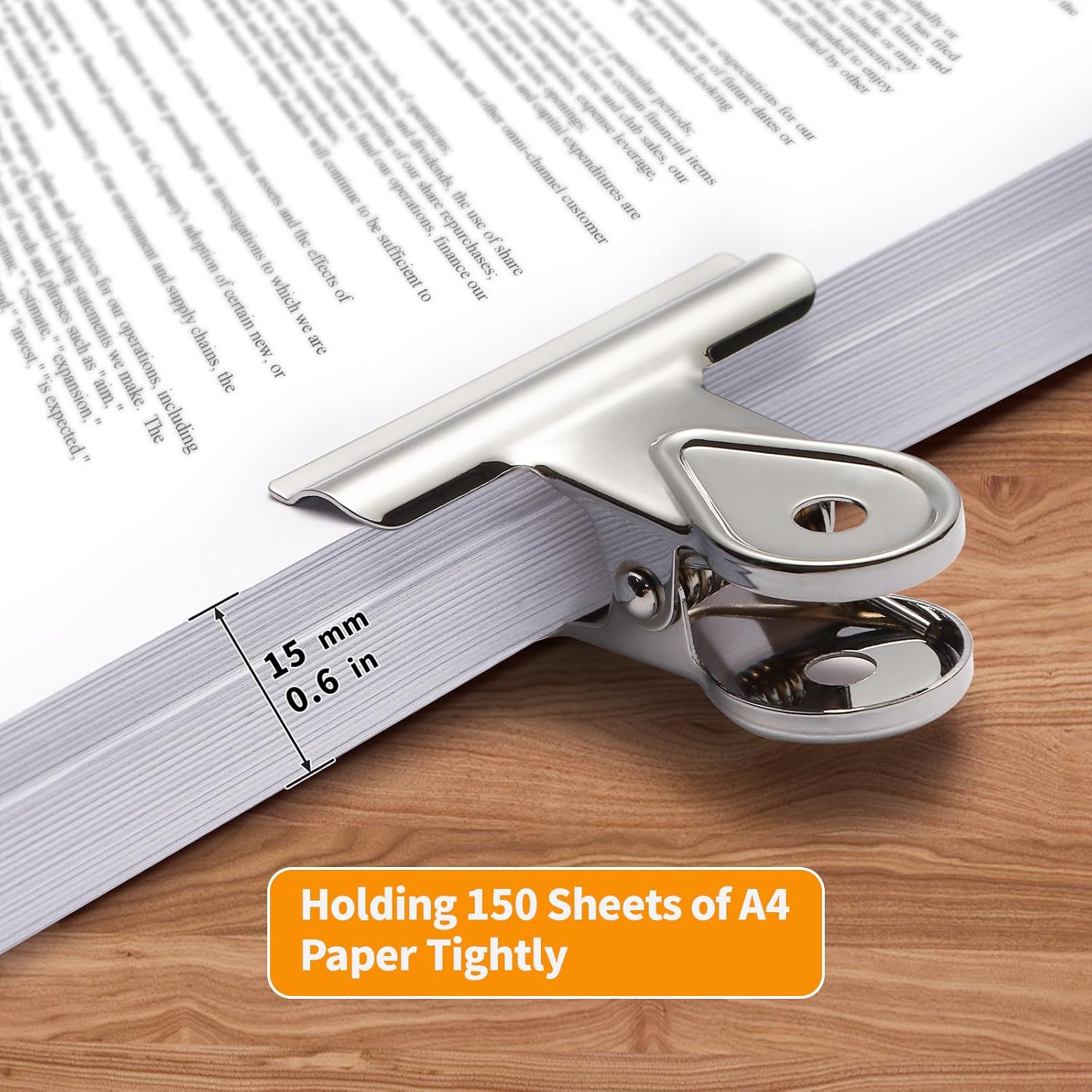 SIAMESE Bulldog Clips, 8 Pcs Binder Clips for Office & Kitchen, Multi-Purpose Binder and Food Bag Clamps for Sealing, Storage, Hanging (Silver)