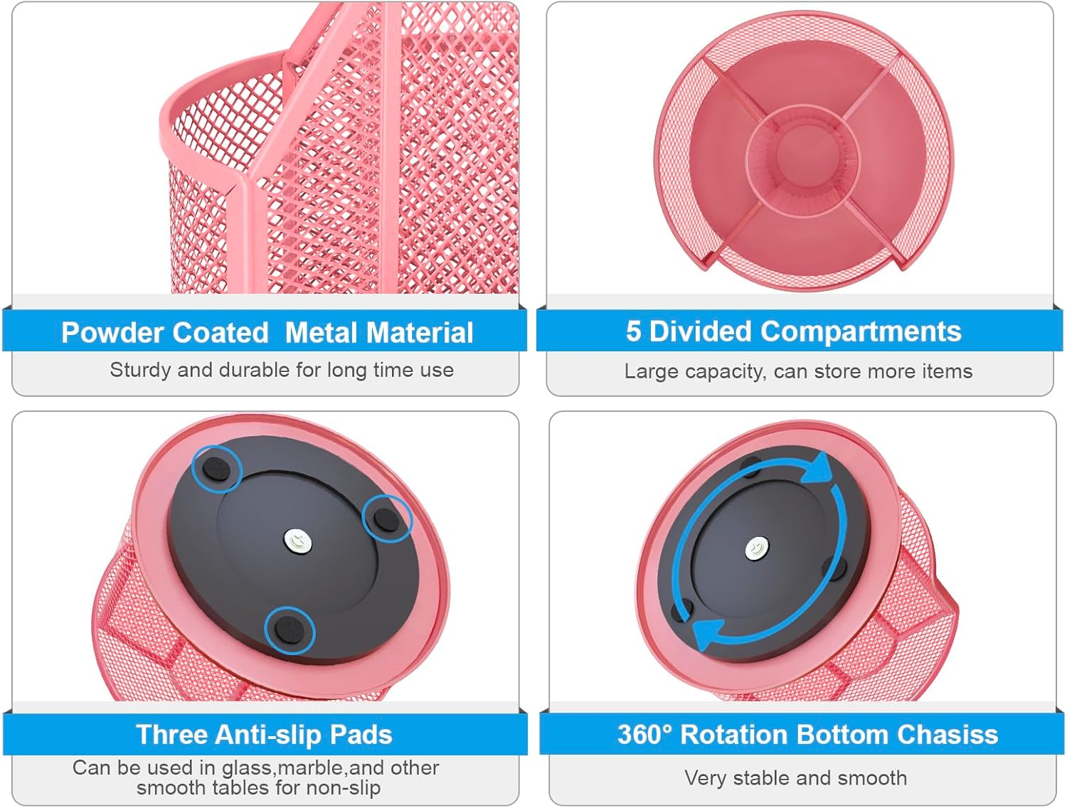 Sturdy Rotating Pen Holder, Cute Metal Pencil Holder, Large Mesh Pen Organizer for Desk, Premium Friendly Office Desk Accessories & Workspace Organizers, Pink