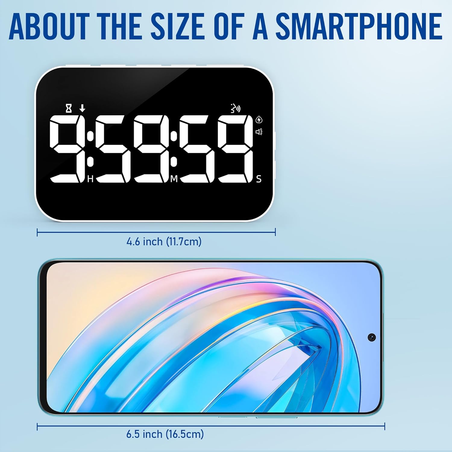 LED Timer(1.5" Number) with Voice Reminder, Digital Magnetic Timer, Countdown/Up, Rechargeabilit, Brightness Display, 3 Volume Levels and Vibration Mode, for Classroom, Study (White)