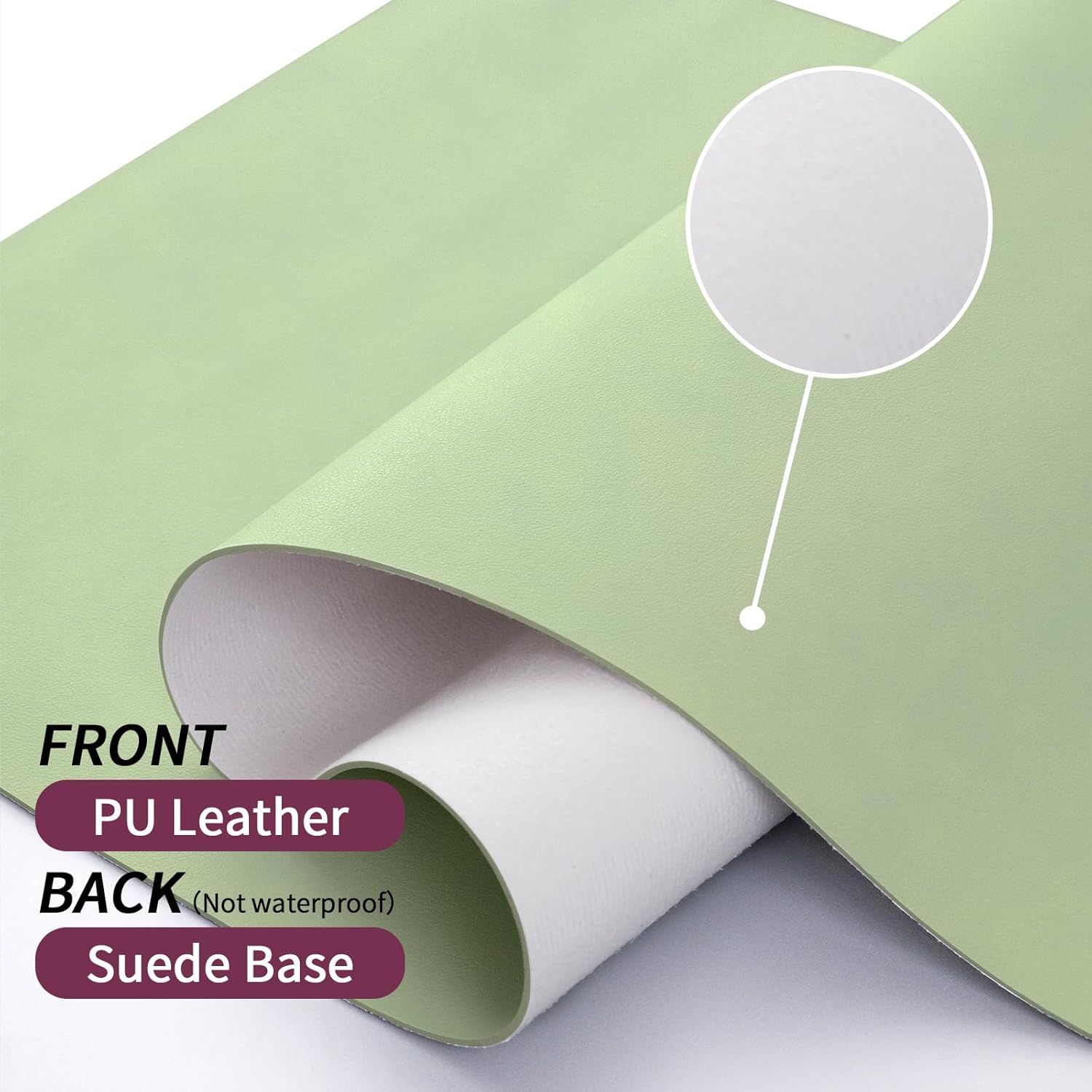 - 【Waterproof & Easy to Clean】The PU leather material desk mat is waterproof and heat resistant, easy to clean. It can perfectly protect your desktop from drinks, ink and other liquids. For cleaning, just wipe its surface stains with a damp cloth. Please note that its suede backing is not waterproof!