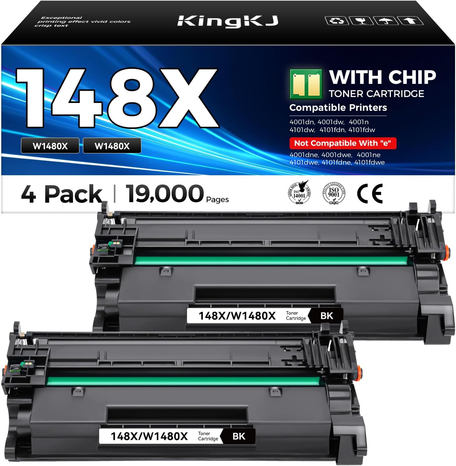 148X Black Toner Cartridge High Yield with chip 2-Pack Replacement for HP 148X W1480X 148A W1480A Compatible with HP LaserJet Pro MFP 4101dw 4101fdn 4101fdw 4001dn 4001dw 4001n Printer Ink 4001 4101 e