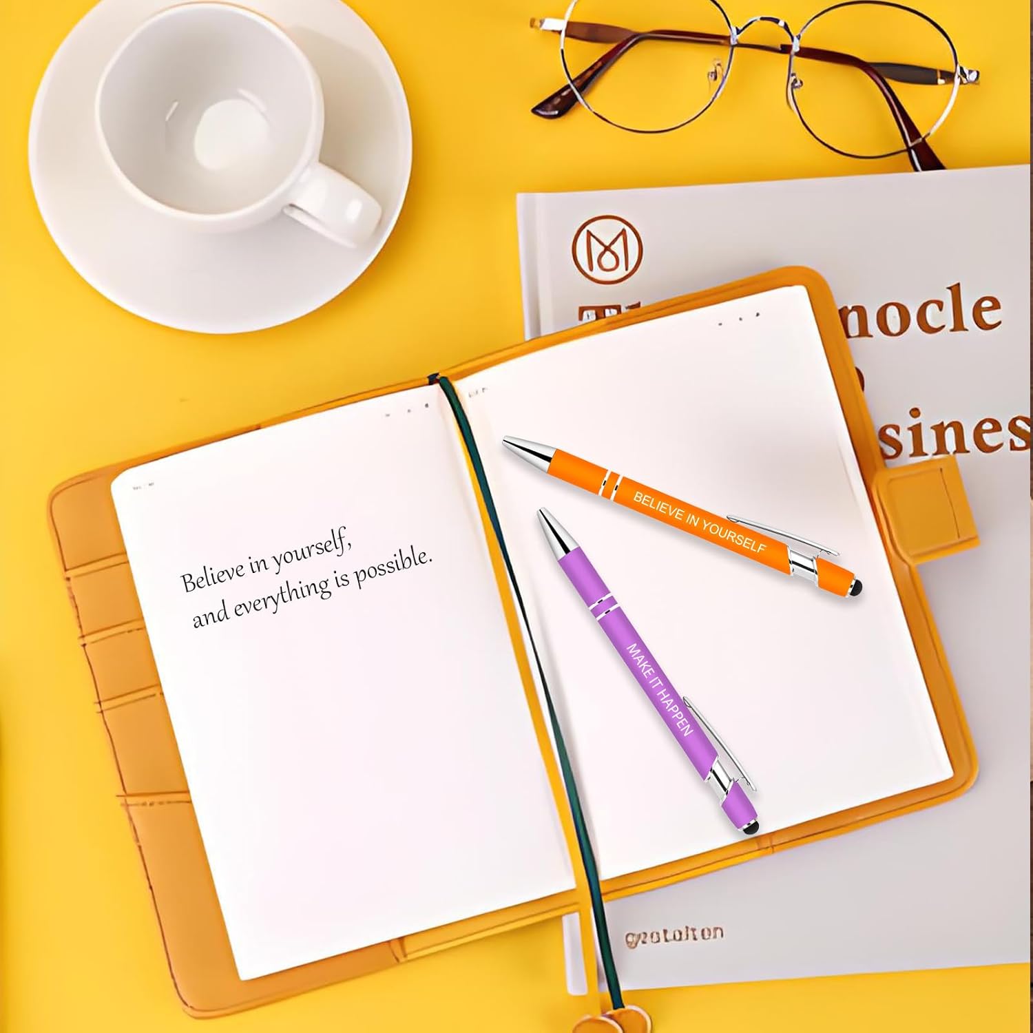 - Touchscreen-Friendly Design: Each Luxeviss stylish pen with encouraging quotes boasts a soft stylus tip at the end, enabling you to navigate your smartphone or tablet screen effortlessly. The stylus tip is user-friendly, adding convenience to your daily routine.