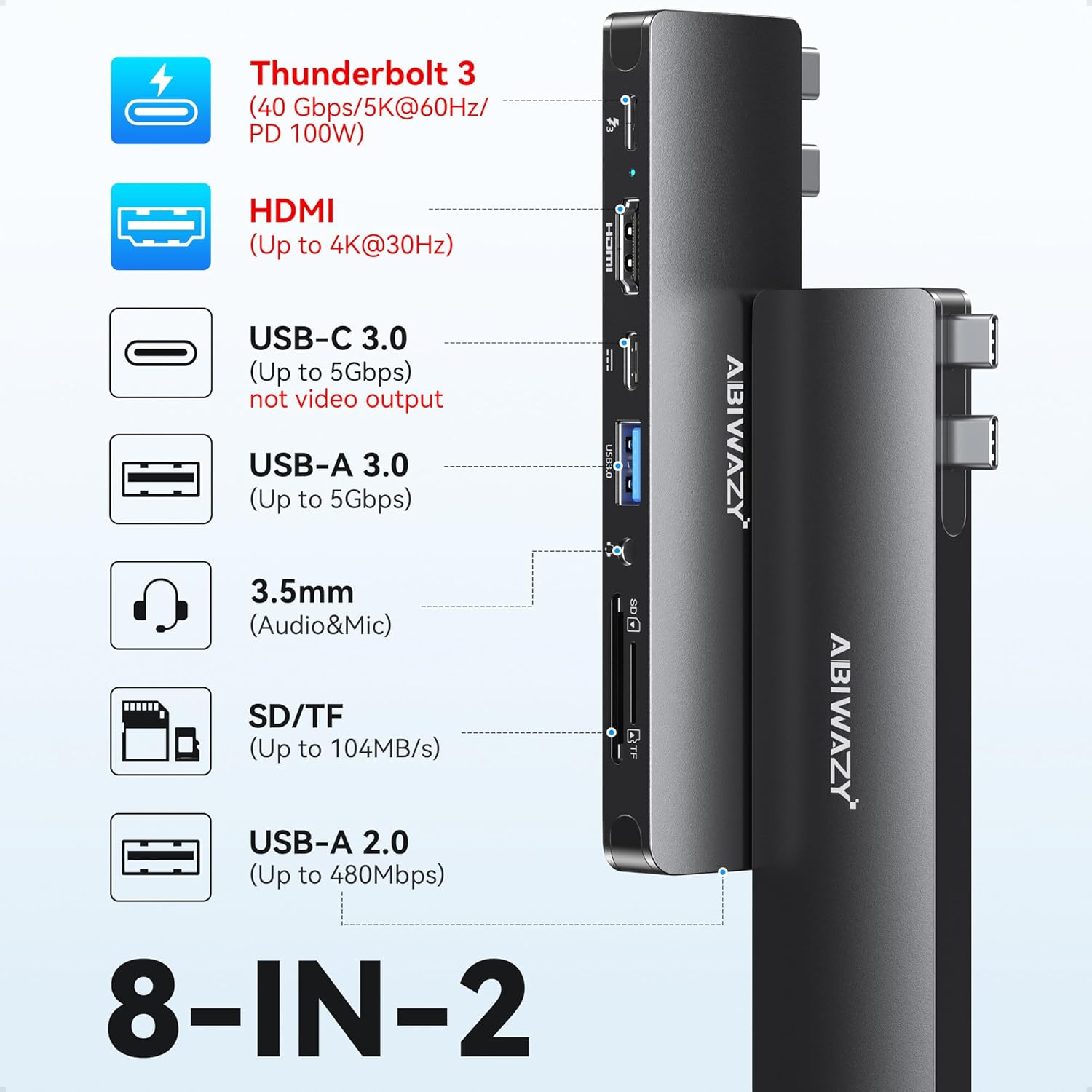 - Efficient 100W PD Charging and Audio Port for Mac Adapter: Power up your MacBook Air with our multifunctional USB Adapter. The Thunderbolt 3 port supports 5K 60Hz display, 40Gbps data transfer, and rapid 100W PD charging, capable of quickly charging your MacBook with 100W input and 85W output. Keep the audio port for your Macbook