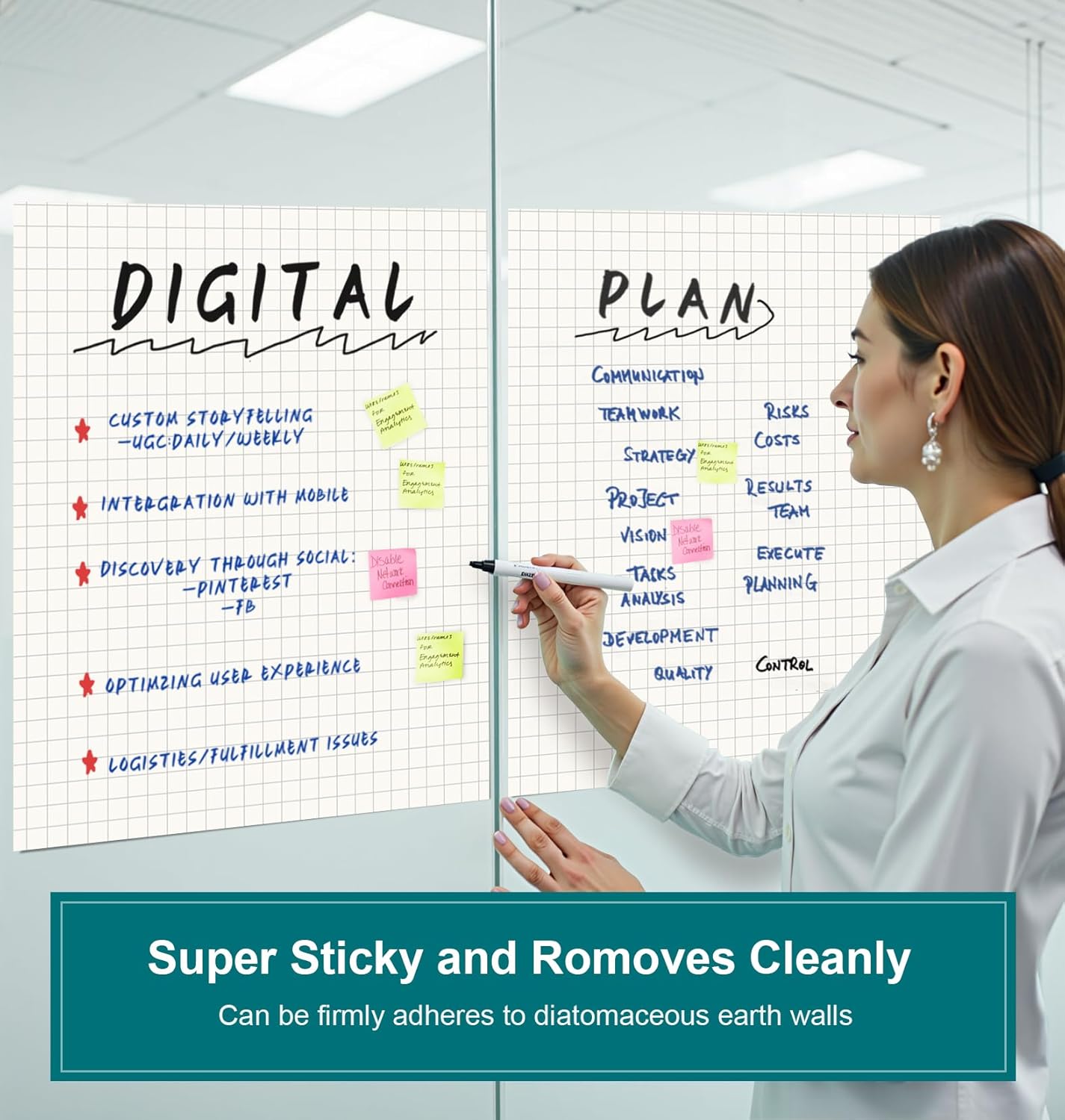 - 【Ink Bleed-Through Resistance】The large sticky notes paper can resist bleed-through from markers or pens, ensuring that your notes and ideas stay clear and easy to read