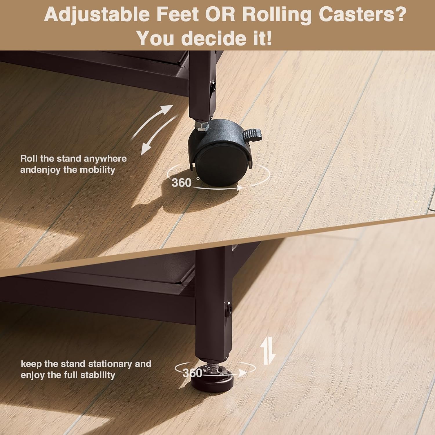 - Easy to Move & Stable When Stationary:The printer stand with storage has 4 wheels that can rotate 360°, and you can push the printer stand to wherever you want. 2 of the 4 wheels can be locked, allowing flexible movement while maintaining sufficient stability in the placement position of the printer stand. The printer stand also comes with 4 Adjustable Feet for you to choose upon your needs