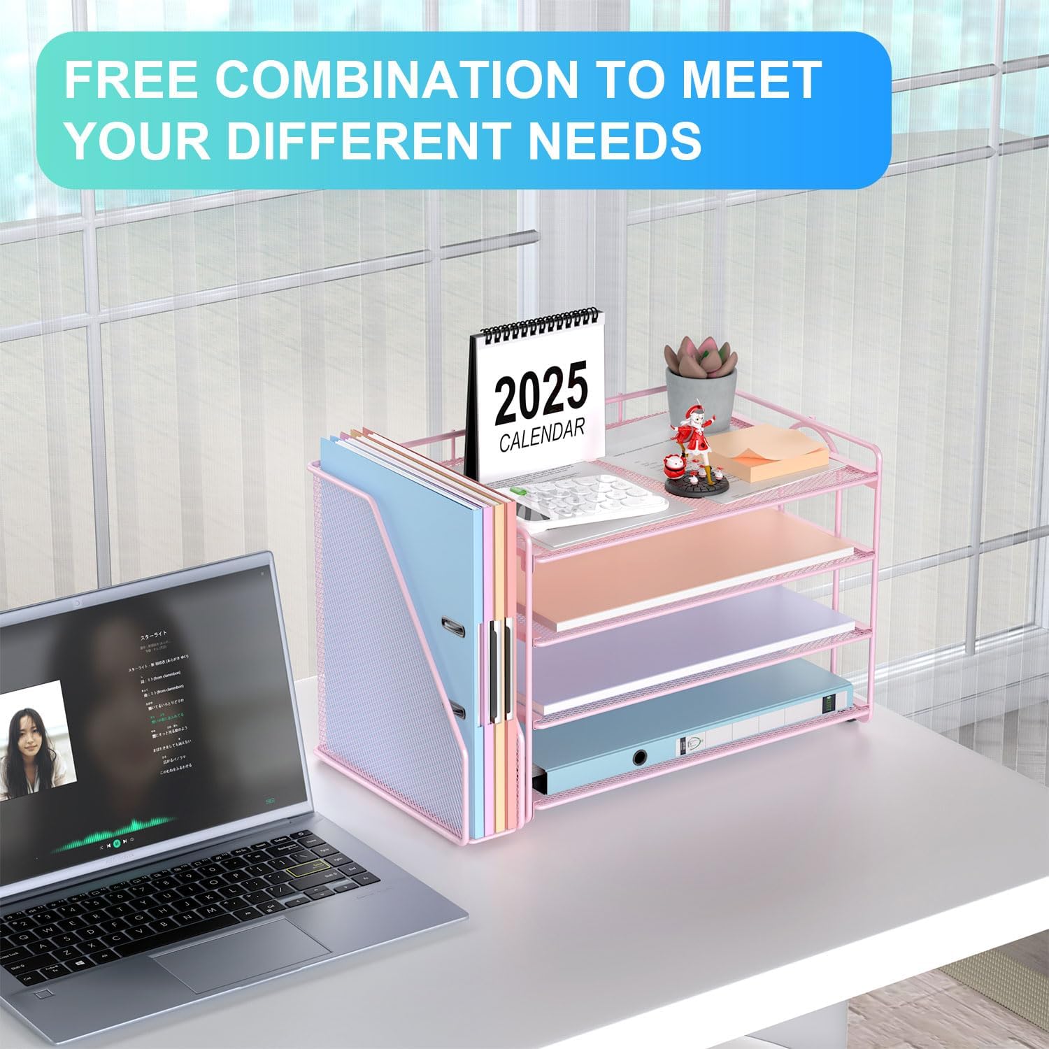 gianotter 4-Tier Paper Organizer With Magazine Holder, Desk Organizers and Accessories, Pink Desk Accessories, File Organizer for Office Supplies Storag(Pink)