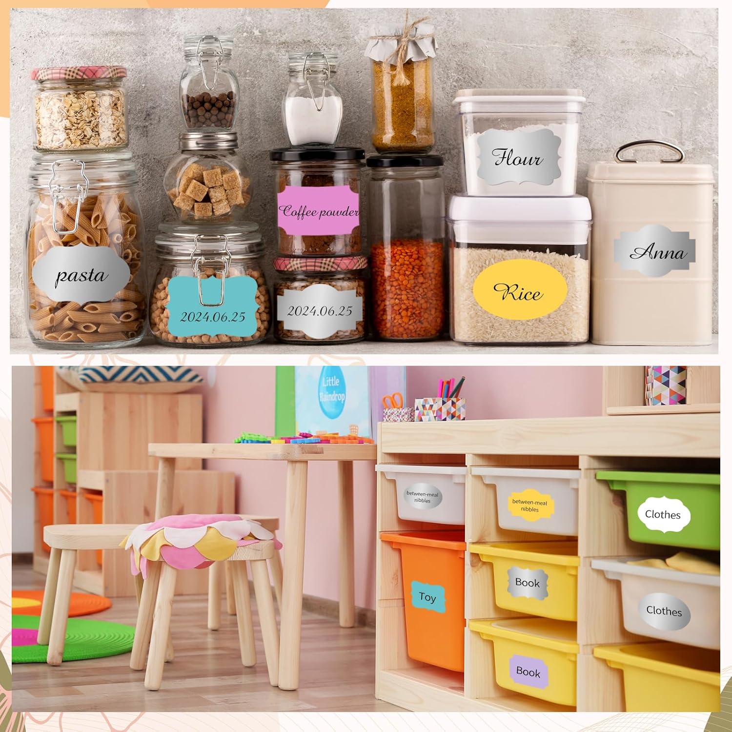 Silver Labels Stickers, 250 PCS 3" x 2" Fancy Shape Stickers Labels for Storage Box or Food Jars Holiday Present Stickers Christmas Gift Tags Stickers