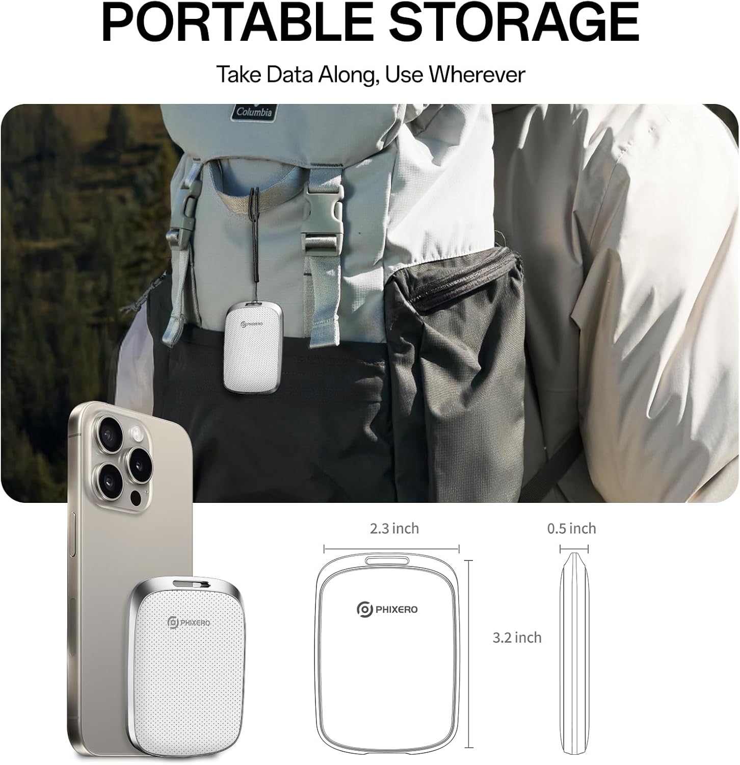 - 【Sturdy and Portable】PHIXERO P5PLUS External Solid State Drive adopts anti-drop, anti-vibration, anti-dust, and solid one-piece aluminum alloy frame with high strength and durability, making this portable hard drive keep the drive almost silent when running. The mini design makes it very convenient for you to carry and use. It can be easily put into a briefcase or a pocket of clothes.