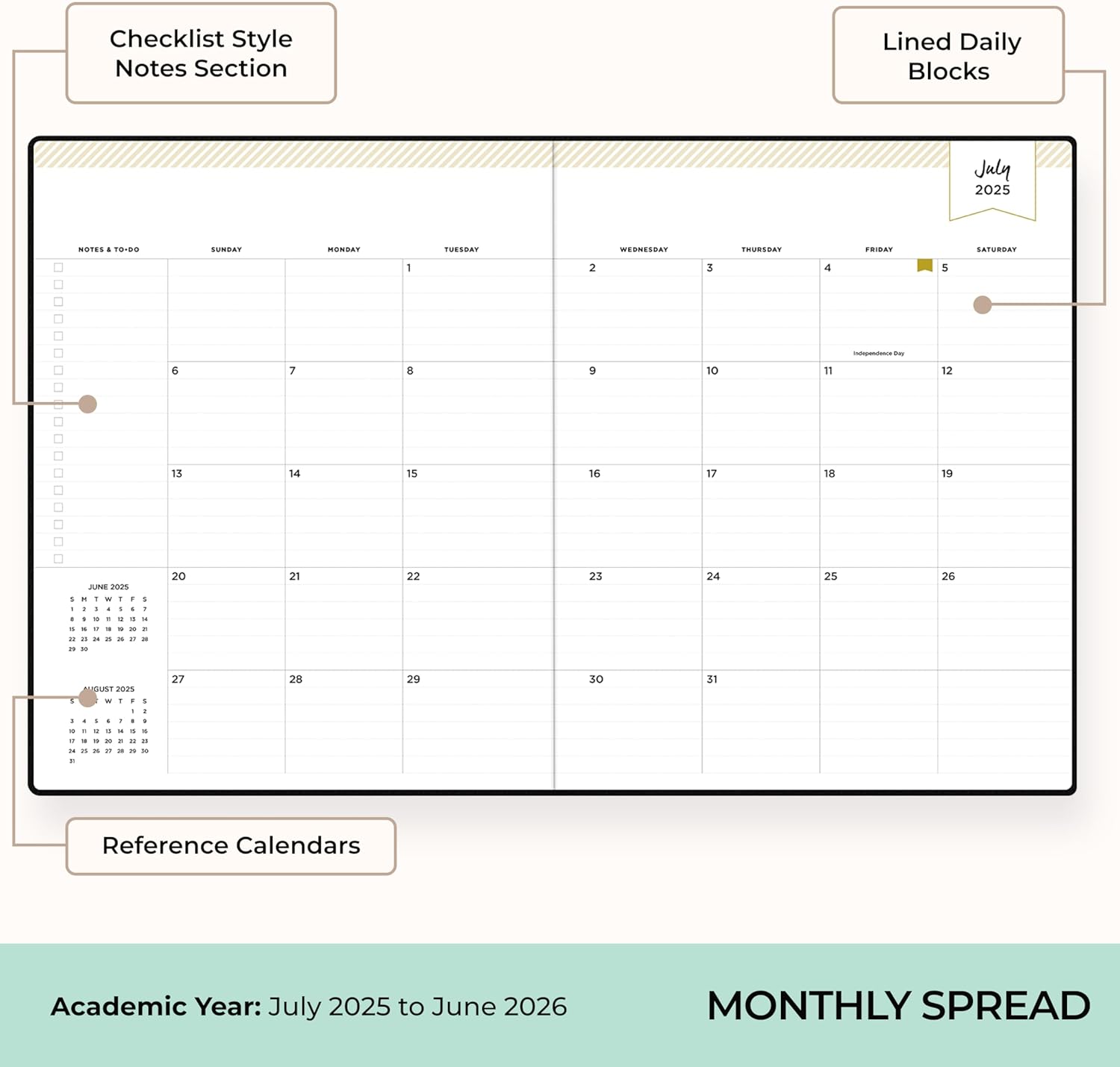 - [STAY ORGANIZED ALL YEAR] July 2025 - June 2026 professional day planner with 12 months of monthly and weekly pages for easy academic planning and scheduling; 2 additional monthly pages (May 2025 - June 2025) are included