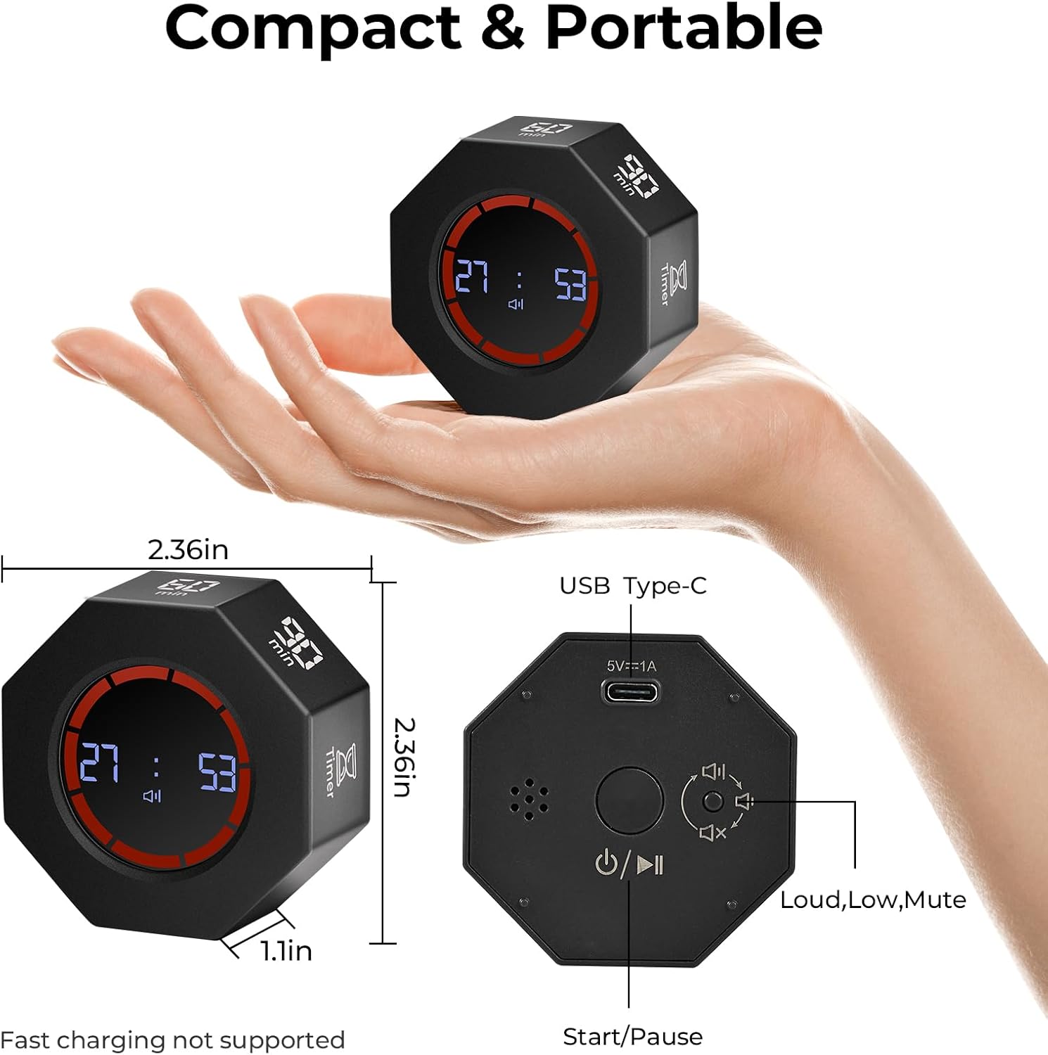 Rechargeable Pomodoro Timer, 8-Angle Auto-Rotating Screen with Gravity Sensor, Digital Timers for Classroom, Small Kitchen Timers for Cooking, Work and Study (Space Gray)