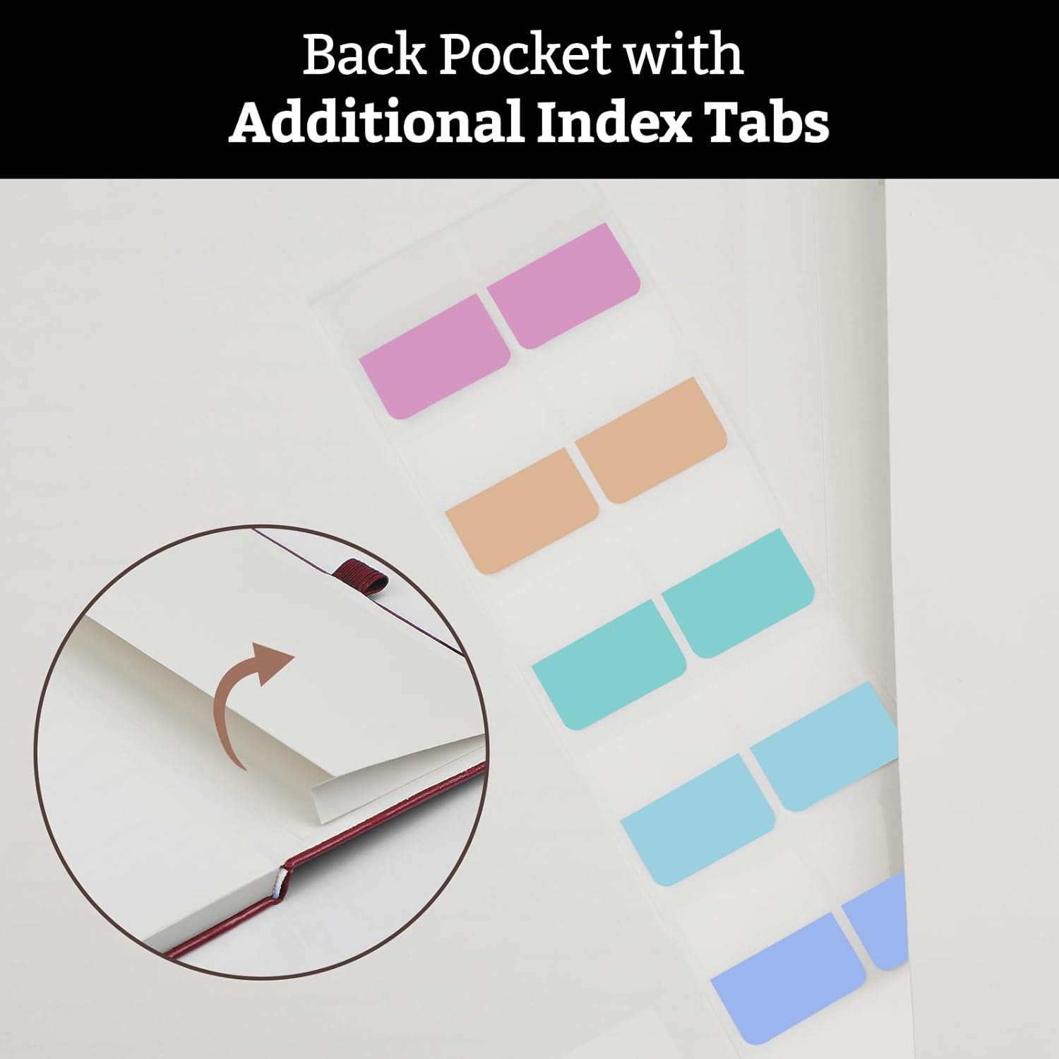 - Bonus Tabs: 1 sheet (12 index tabs) in the pocket—easy to apply/remove without damaging paper.