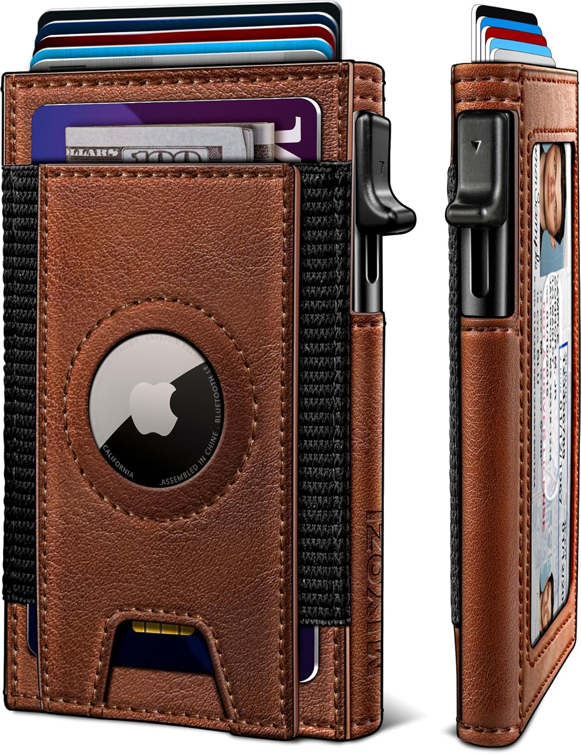 Airtag Wallet for Men, Slim Pop Up Credit Card Holder RFID Blocking Mens Minimalist wallet for 7-9 Cards ID Window, with Gift Box