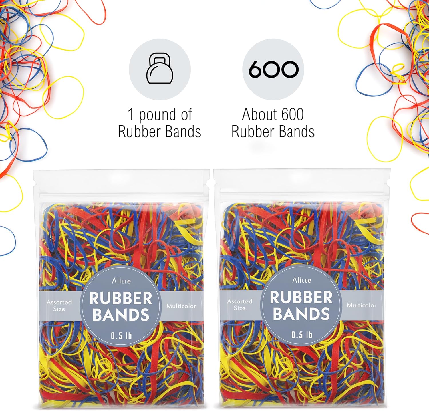 Colored Rubber Bands - 1lb Total (2 Pack of 0.5 lb) Large Rubber Bands Assorted Size and Color for Office Supplies, Arts & Crafts or DIY Projects - Multipurpose Color Elastic Bands Assortment