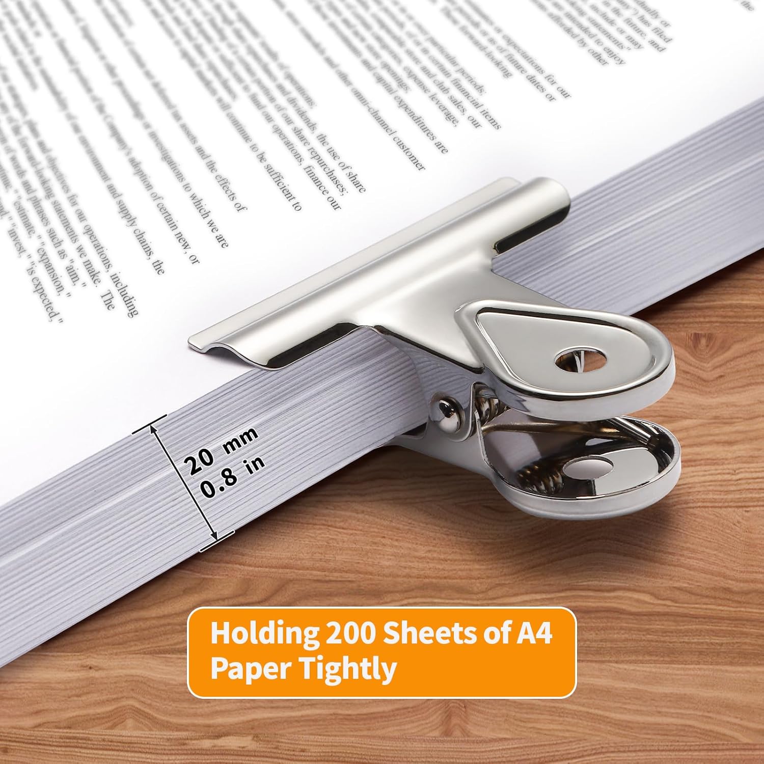 SIAMESE Bulldog Clips, 4 Pcs Binder Clips for Office & Kitchen, Multi-Purpose Binder and Food Bag Clamps for Sealing, Storage, Hanging (Silver)