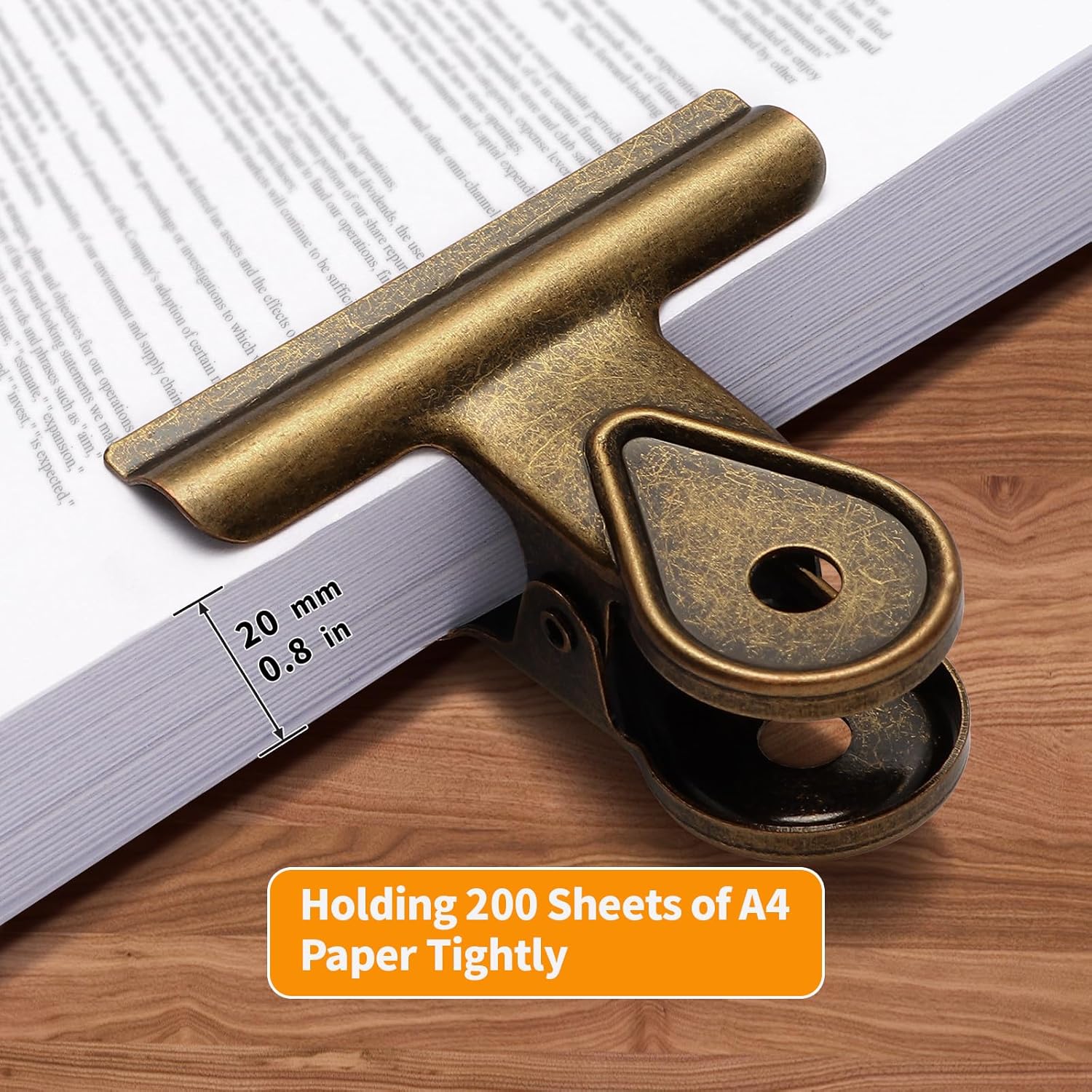 SIAMESE Bulldog Clips, 4 Pcs Binder Clips for Office & Kitchen, Multi-Purpose Binder and Food Bag Clamps for Sealing, Storage, Hanging (Bronze)
