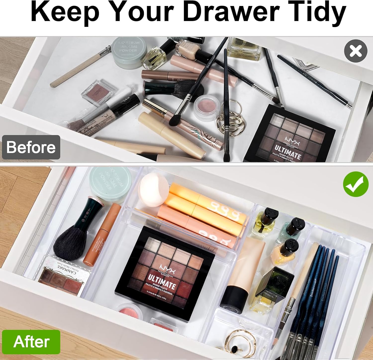 Stackable Acrylic Drawer Organizer Set, 11 PCS Multi-Size Storage Bins for Makeup, Office Desk, Bathroom, Vanity and Kitchen Utensils