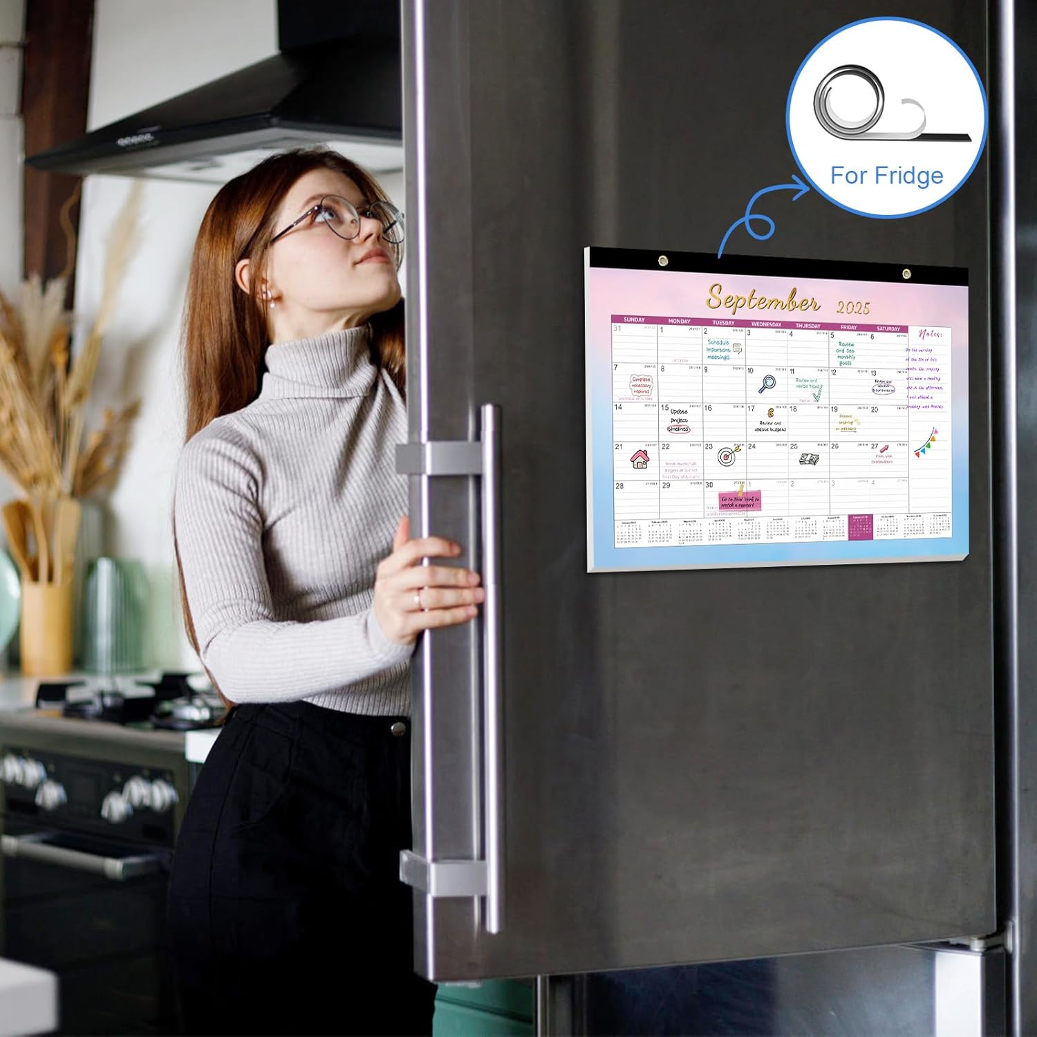 - 📔【Calendar 2025-2026】18 monthly yearly magnetic desk/wall calendar with 3 stickers, covering july 2025 to december 2026. (14" x 11") Each page has a monthly overview with mini-month references to help you plan and organize your school, office and home work efficiently.