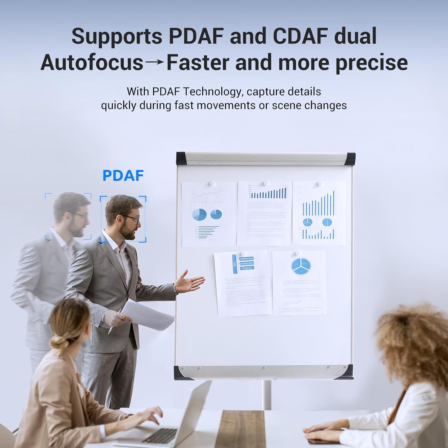 - Precision PDAF Autofocus & Light Balance: Equipped with advanced PDAF and CDAF dual autofocus, the webcam for streaming ensures faster, more accurate, and more stable focus in any scenario. Its auto light adjustment enhances clarity by balancing shadows and highlights, even in low light. Designed for office workers and creators who demand top-tier performance and visual excellence