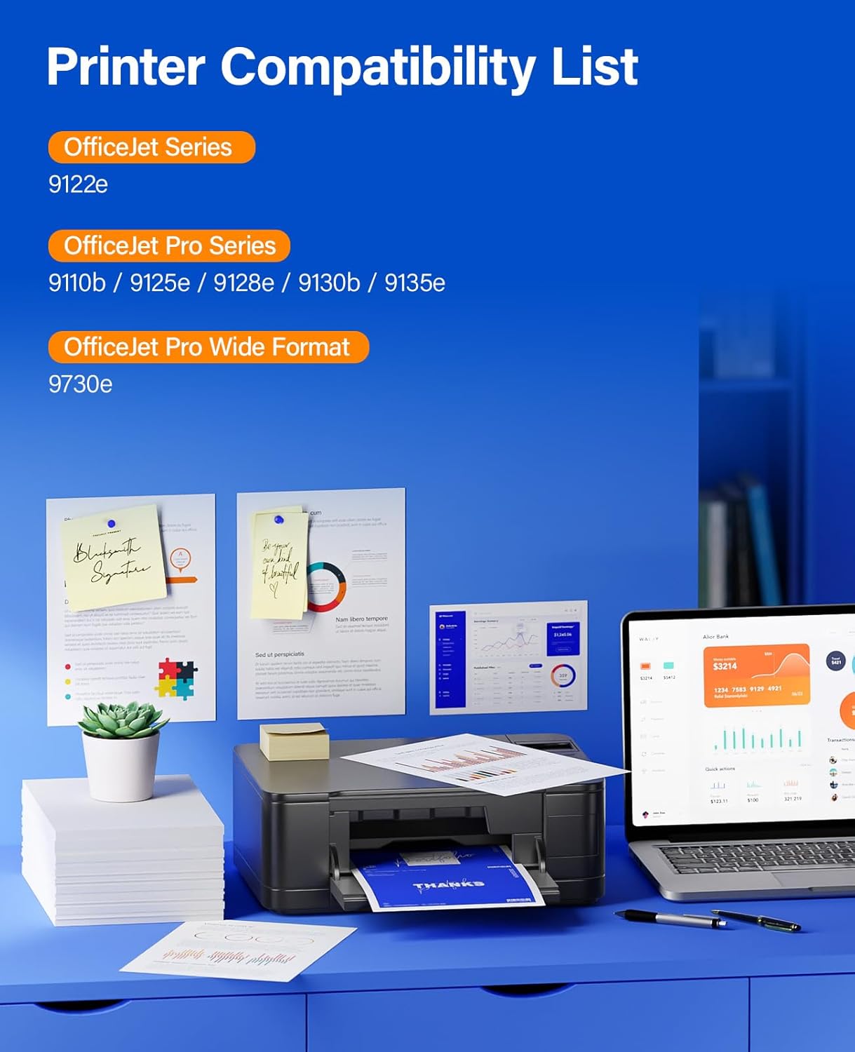 - Compatible Printer: Compatible for HP OfficeJet 9122e;HP OfficeJet Pro 9110b,9125e,9128e,9130b,9135e;HP OfficeJet Pro Wide Format 9730e Printers.
