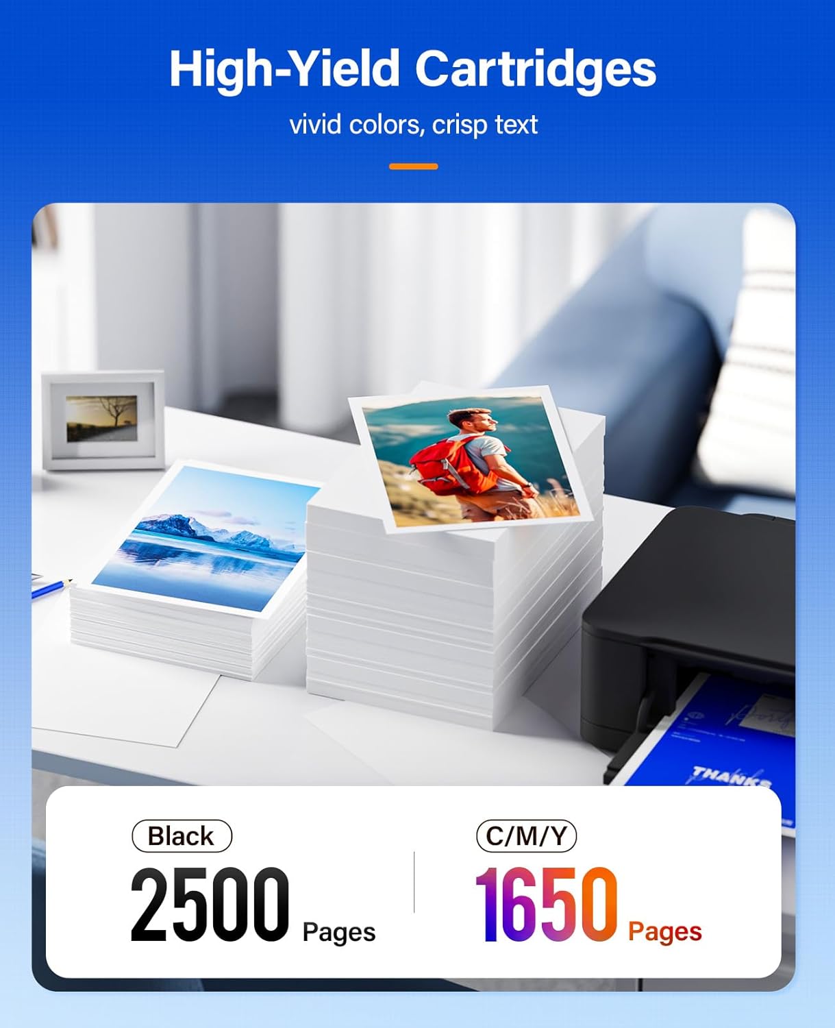 - High Page Yield: 2,500 pages for Black & 1,650 pages Color ink cartridge (A4, 5% Coverage), with High Yield Version hp 936e.