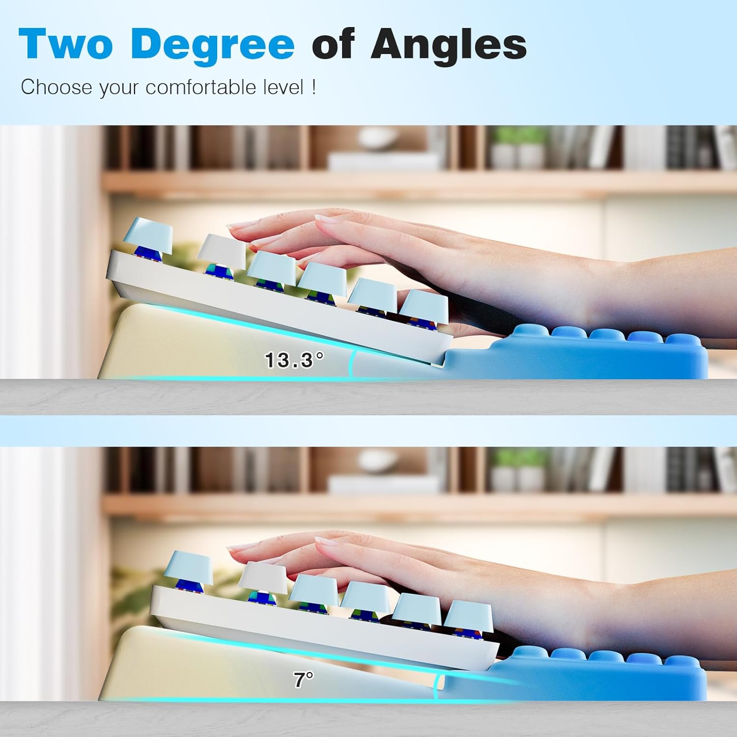 - Works with most keyboards and features two angle settings - adjust the tilt to match how you type for all-day comfort.