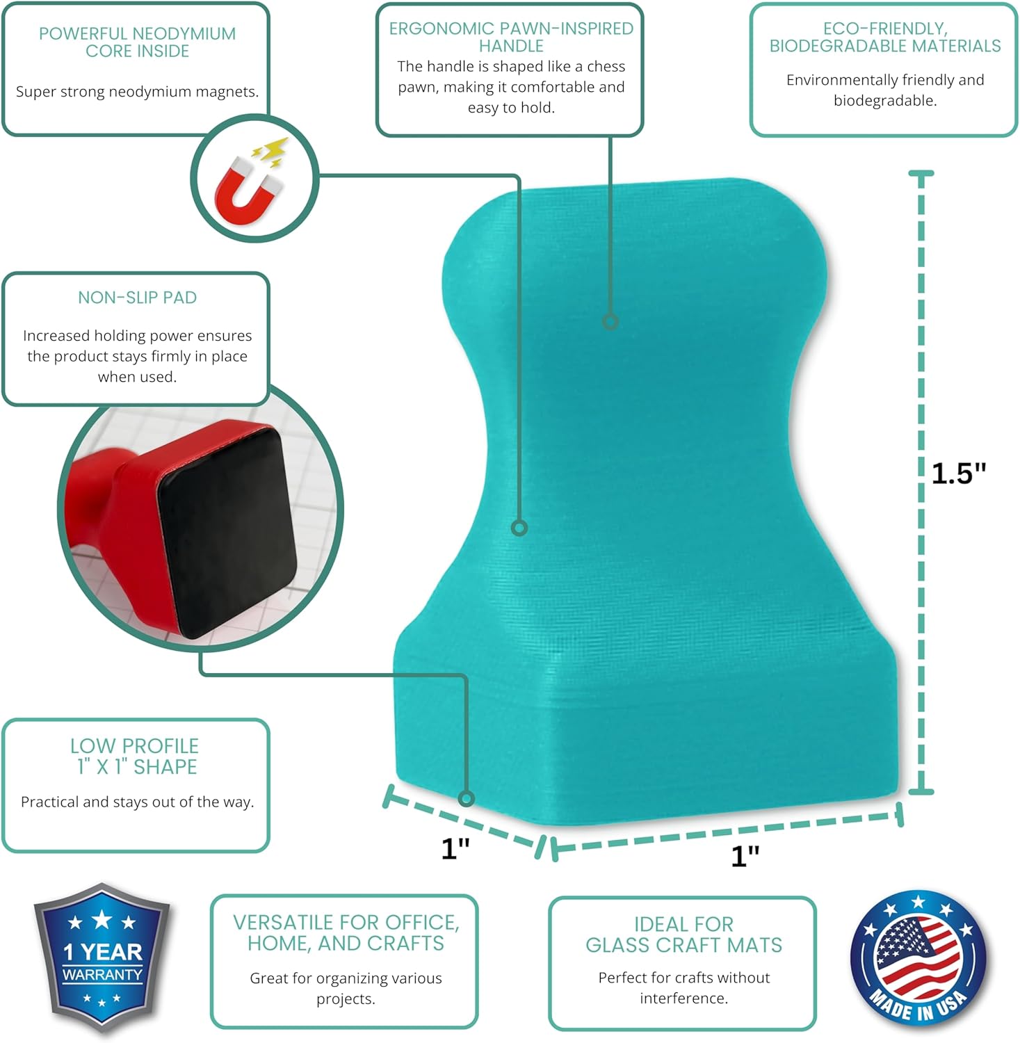 Glassboard Studio MiniBar Magnet - Strong Neodymium Rare Earth Magnets for Fridge, Whiteboard, Locker & Magnetic Glassboards - Crafting & Office Use - Strong Fridge Magnets (Seaside Teal Pawn, 4)