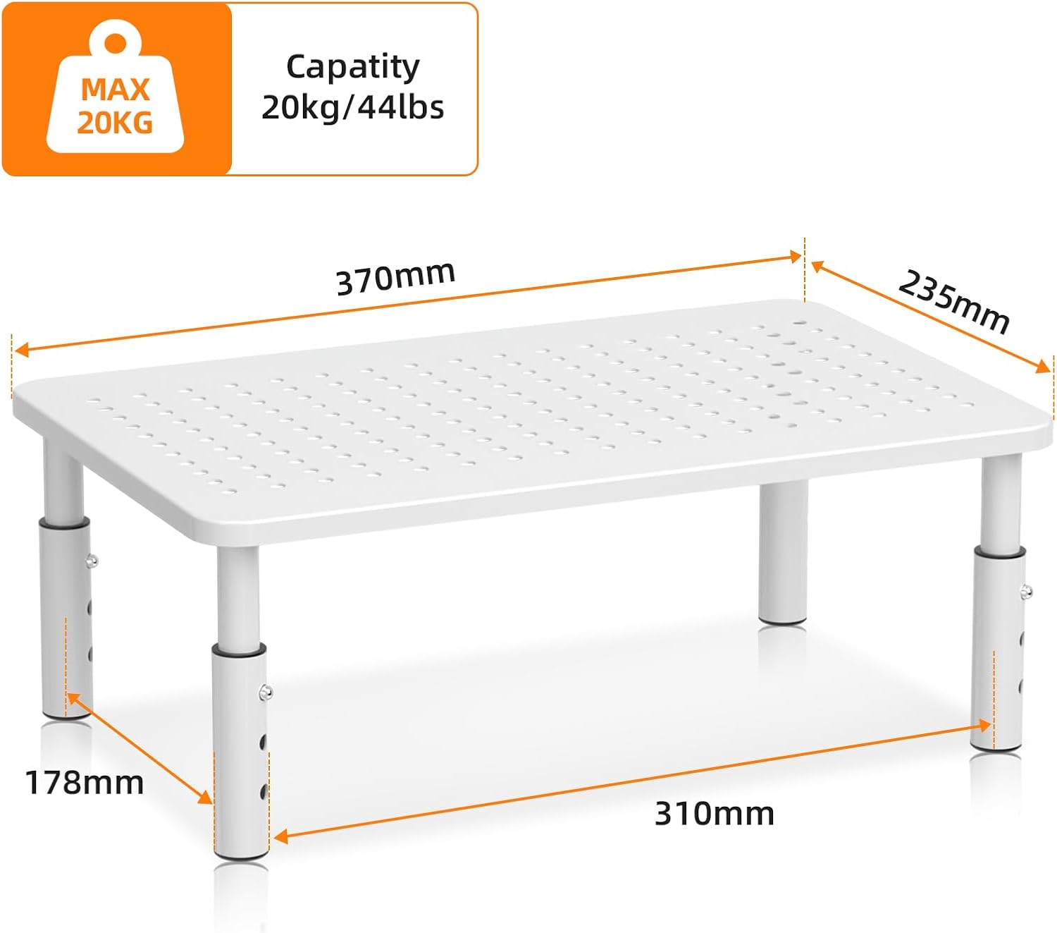 - 【3 HEIGHT ADJUSTMENT】- Fits all laptop brands and models of laptops, printers, gaming consoles, TVs and more devices.Comes With platform dimensions of 370X235MM (L x W) in size, this stand could raise your monitor by 3 adjustable height levels (100MM/120MM/140MM).maximize your desk space and keep your monitor at a proper height. Just press the button on the leg and lift the platform to adjust different height levels.