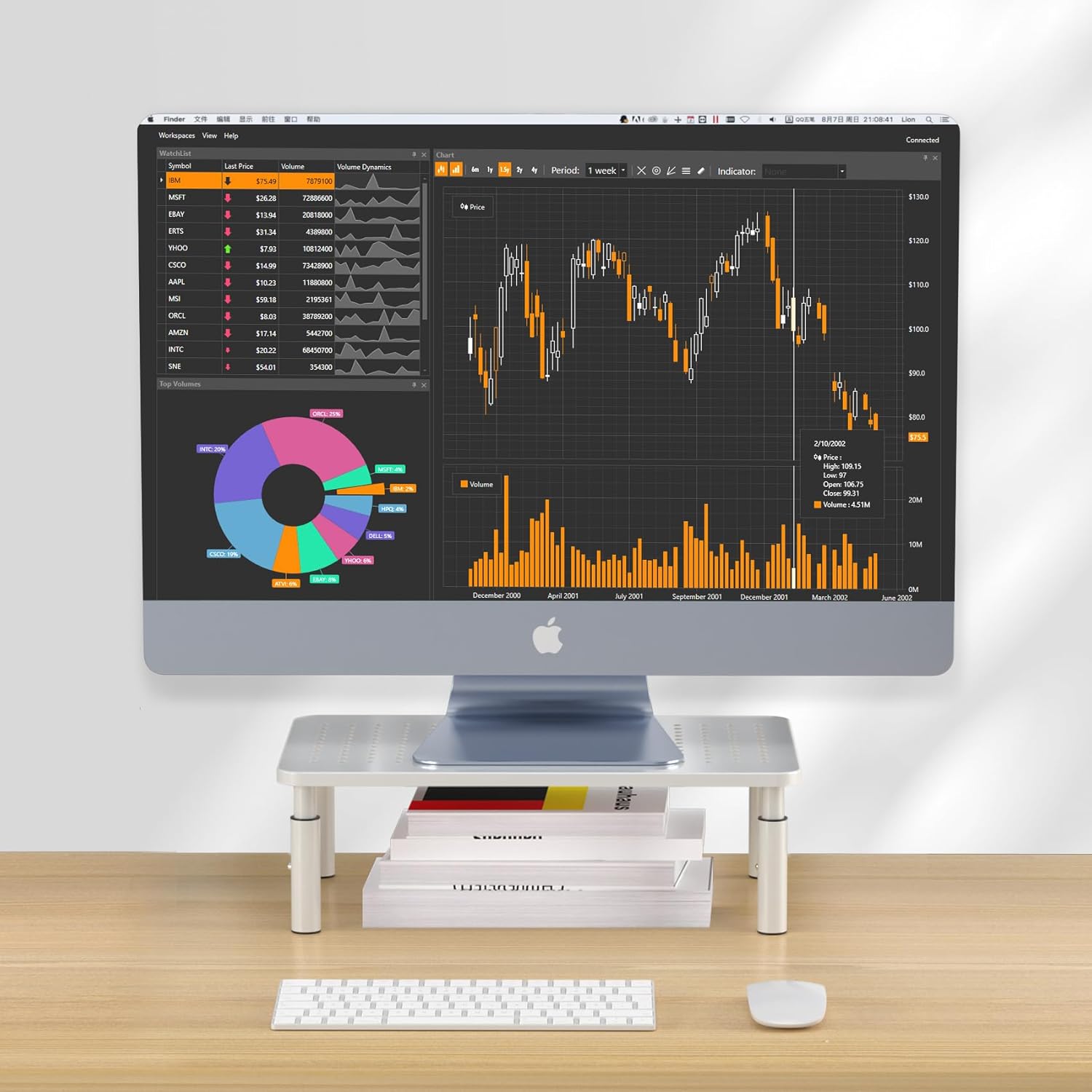 Bracwiser Monitor Stand Riser, Metal Computer Stand, 3 Height Adjustable Screen Riser with Mesh Platform for PS4, Laptop, Printer, Notebook and All Flat Screen, Holds Up to 20KG,White