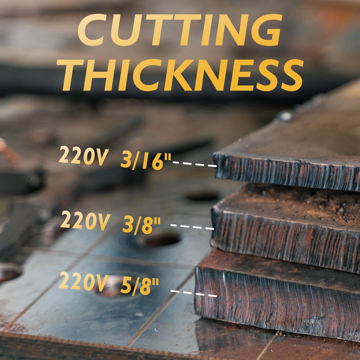 - Quality cutting capabilities:Uses advanced IGBT inverter technology for an ideal clean cut of 5/16 inch (8 mm) at 110V and 1/2 inch (12 mm) at 220V.Maximum cutting capacity of 1/2 inch (12 mm) at 110V and 5/8 inch (16 mm) at 220V.