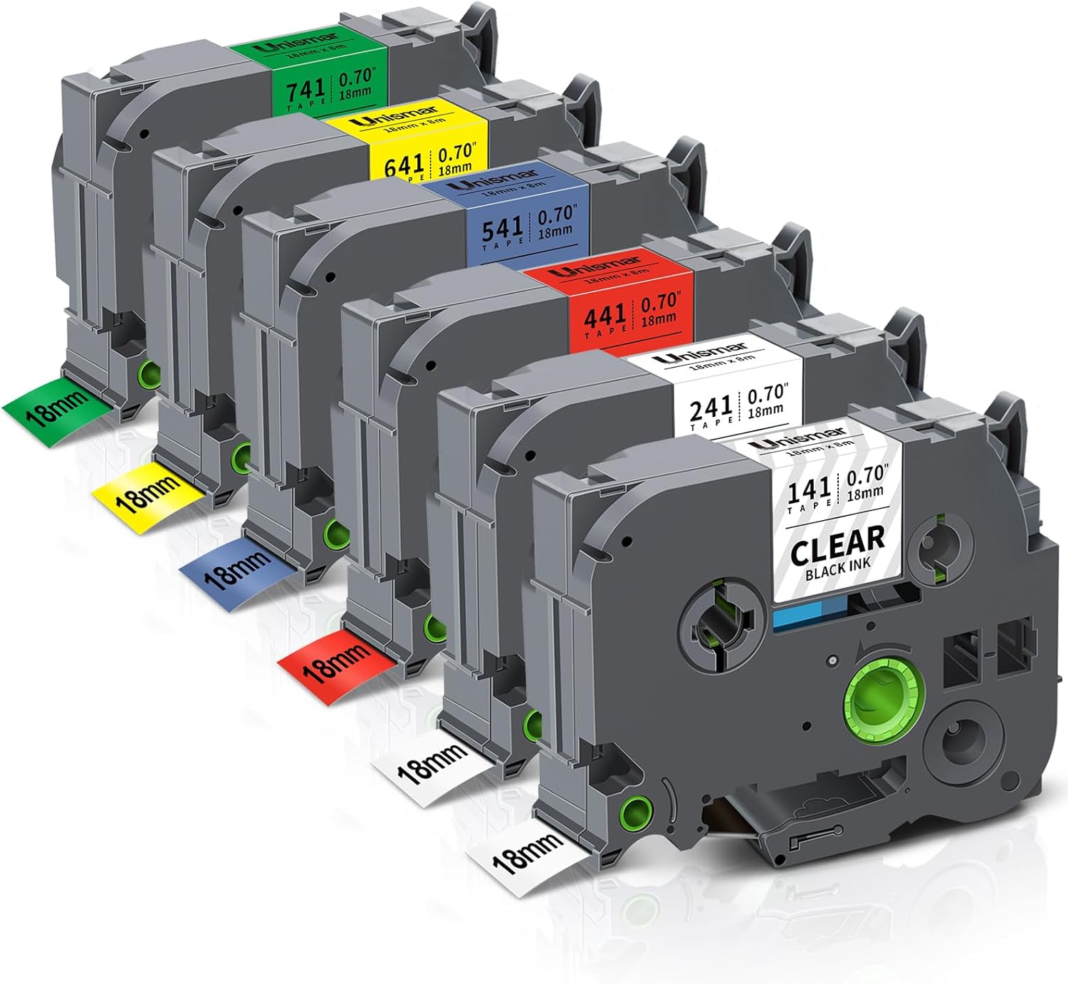 - Color: 1 x TZe-141 (Black on Clear), 1 x TZe-241 (Black on White), 1 x 441 (Black on Red), 1 x 541 (Black on Blue), 1 x 641 (Black on Yellow), 1 x 741 (Black on Green), total 6 packs