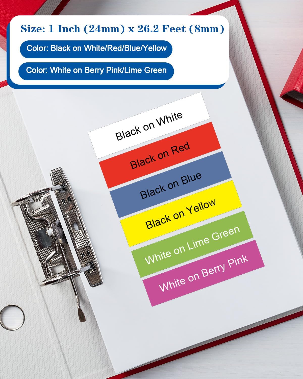 6-Pack TZe TZ Tape 24mm 0.94 Laminated Colored Compatible for Brother P Touch Label Maker Tape 1 Inch Refills for PT-D600 P700 P710BT PT-D610BT PT-P910BT PT-P750W PT-D600VP PT-P900W