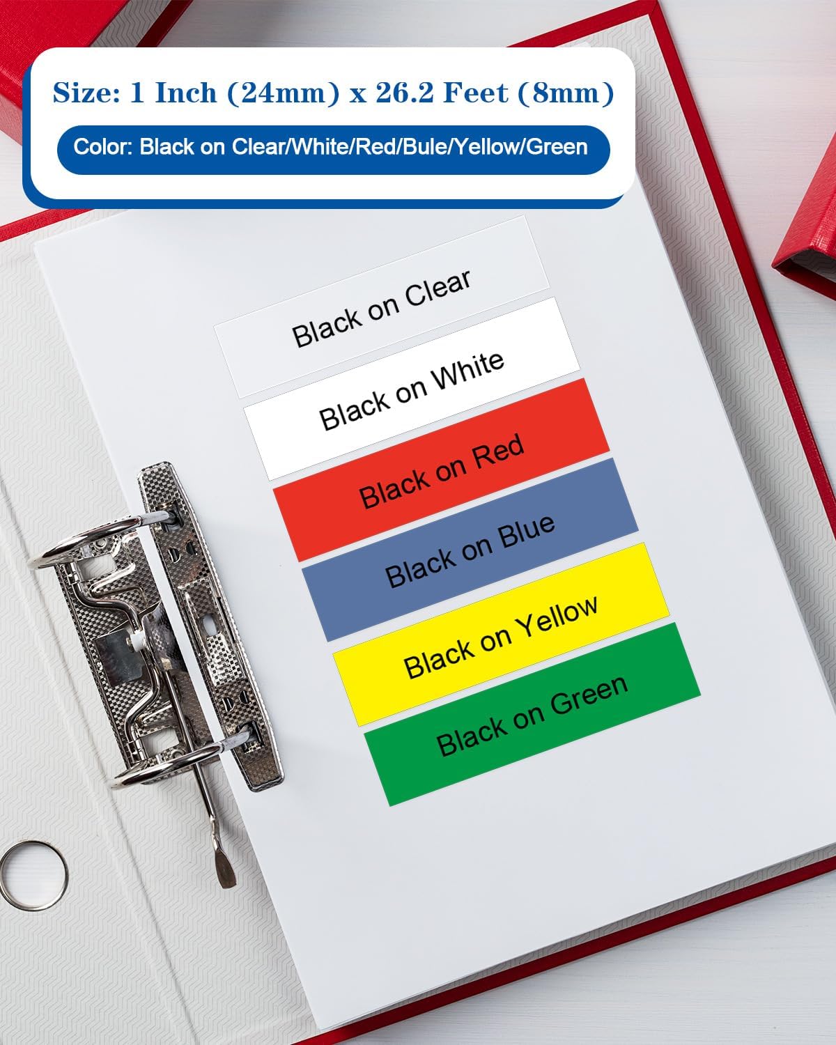6-Pack TZe TZ Tape 24mm 0.94 Laminated Colored Compatible for Brother P Touch Label Maker Tape TZe-251 151 451 551 651 751 Refills for PT-D600 P700 P710BT PT-D610BT P910BT PT-P750W, 1 Inch x 8m